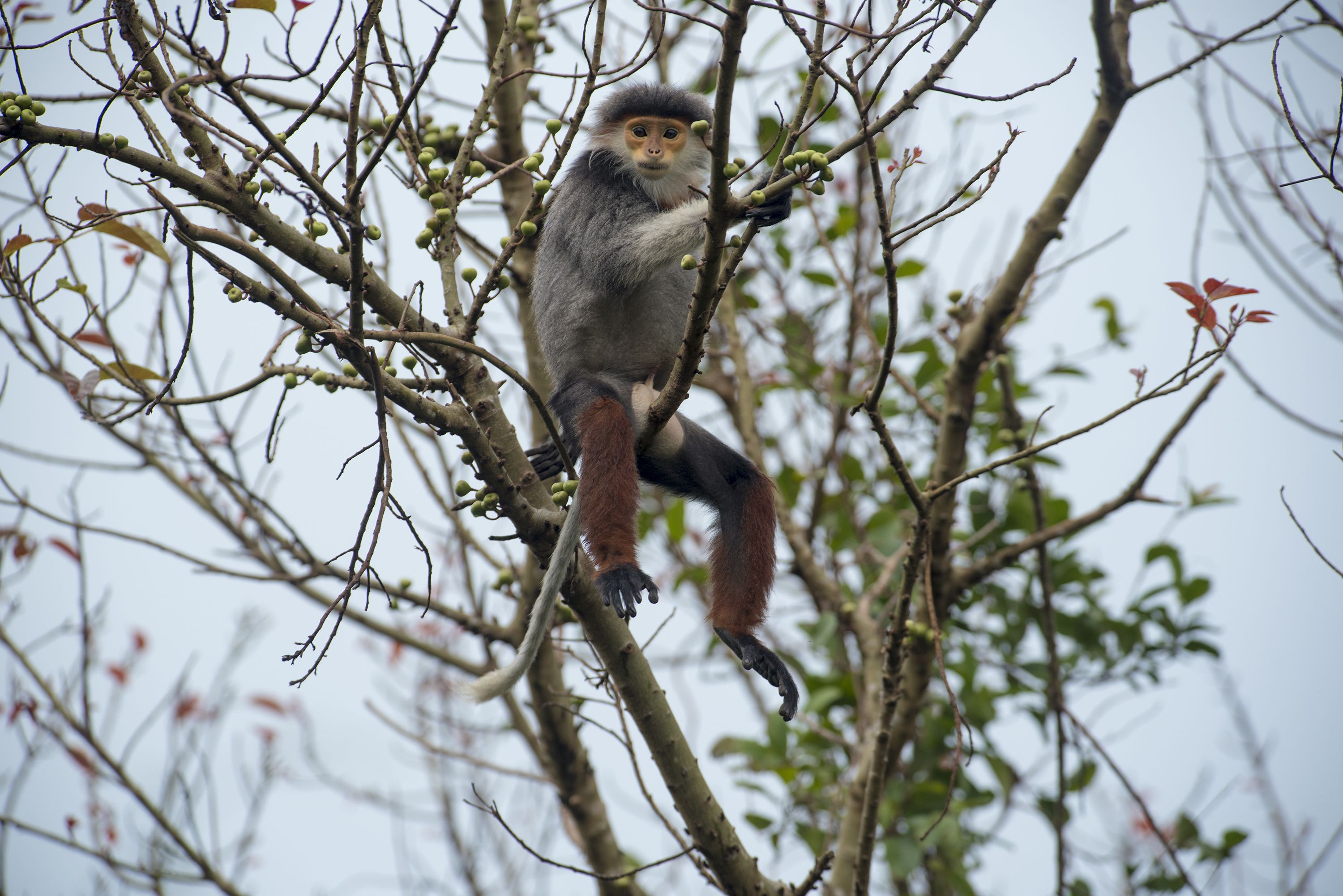 However, their future remains uncertain as this species faces many dangers, namely a sharp decline of their habitat area and rampant illegal poaching. The Vietnamese government strictly forbids the poaching and trafficking of red-shanked doucs under any circumstances. Doucs are also listed in the Red List of Vietnam at an Endangered level (EN), which means they need unconditional protection.