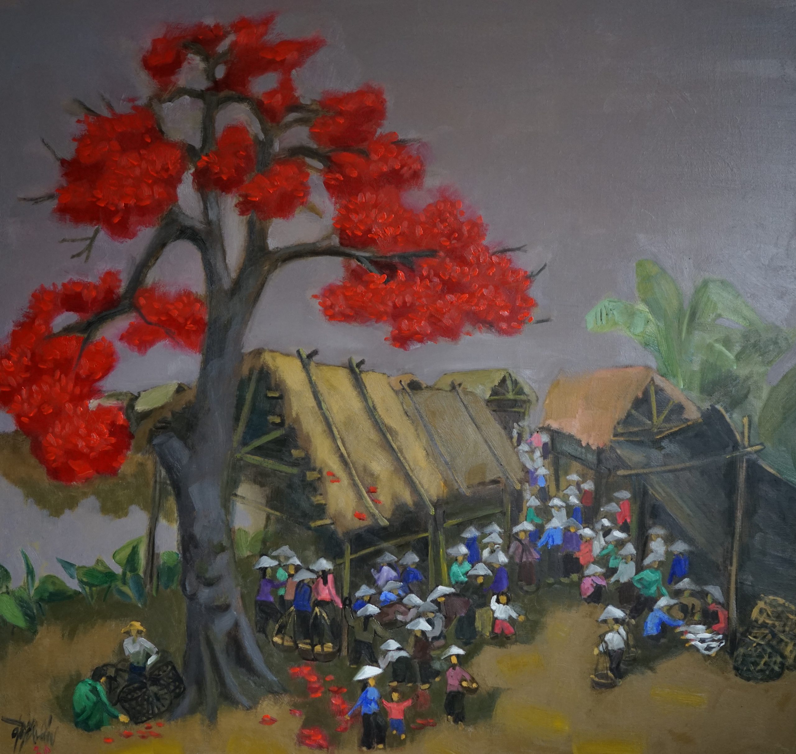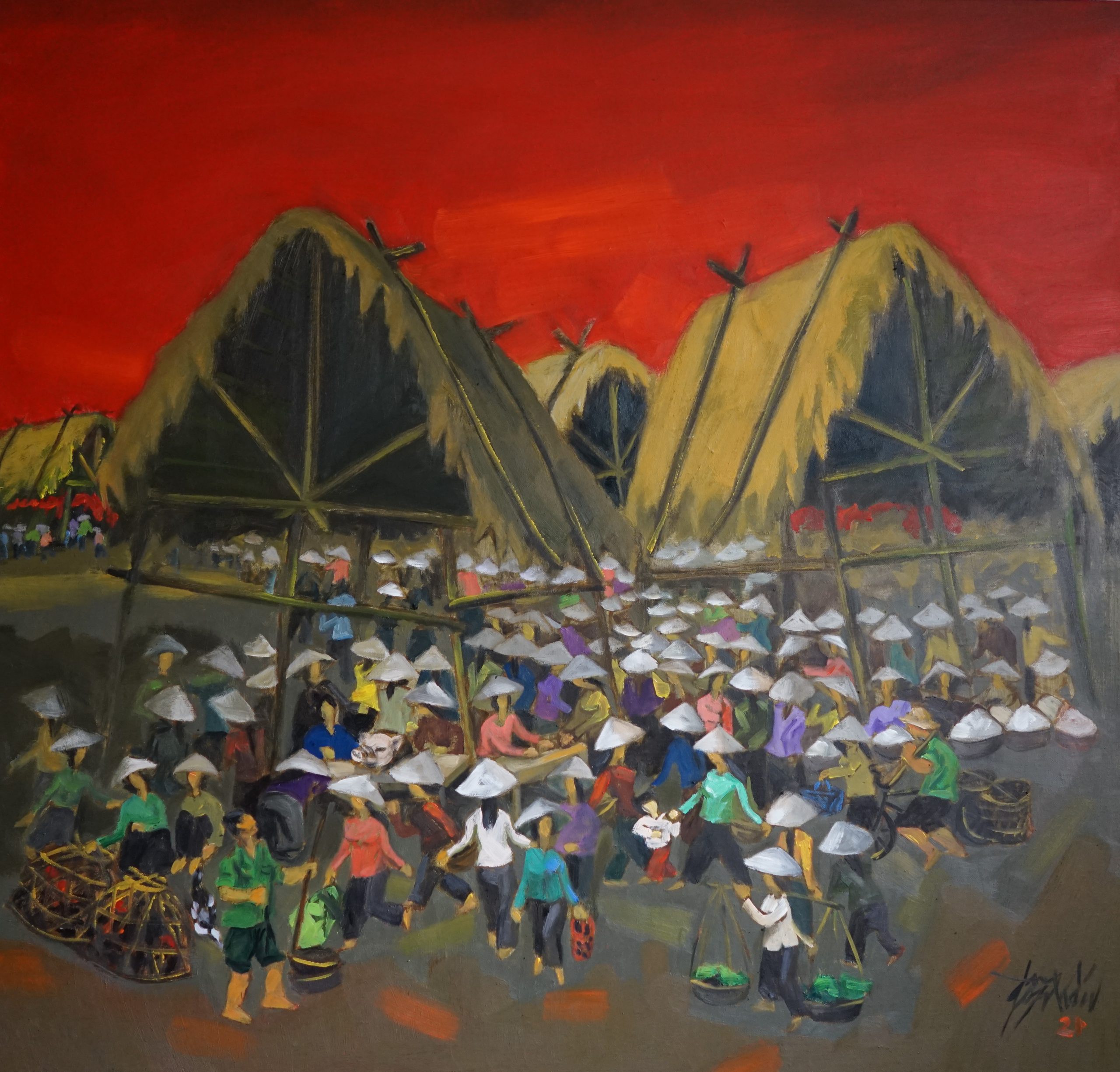 Market Days in Rural Hanoi, oil painting, 2019