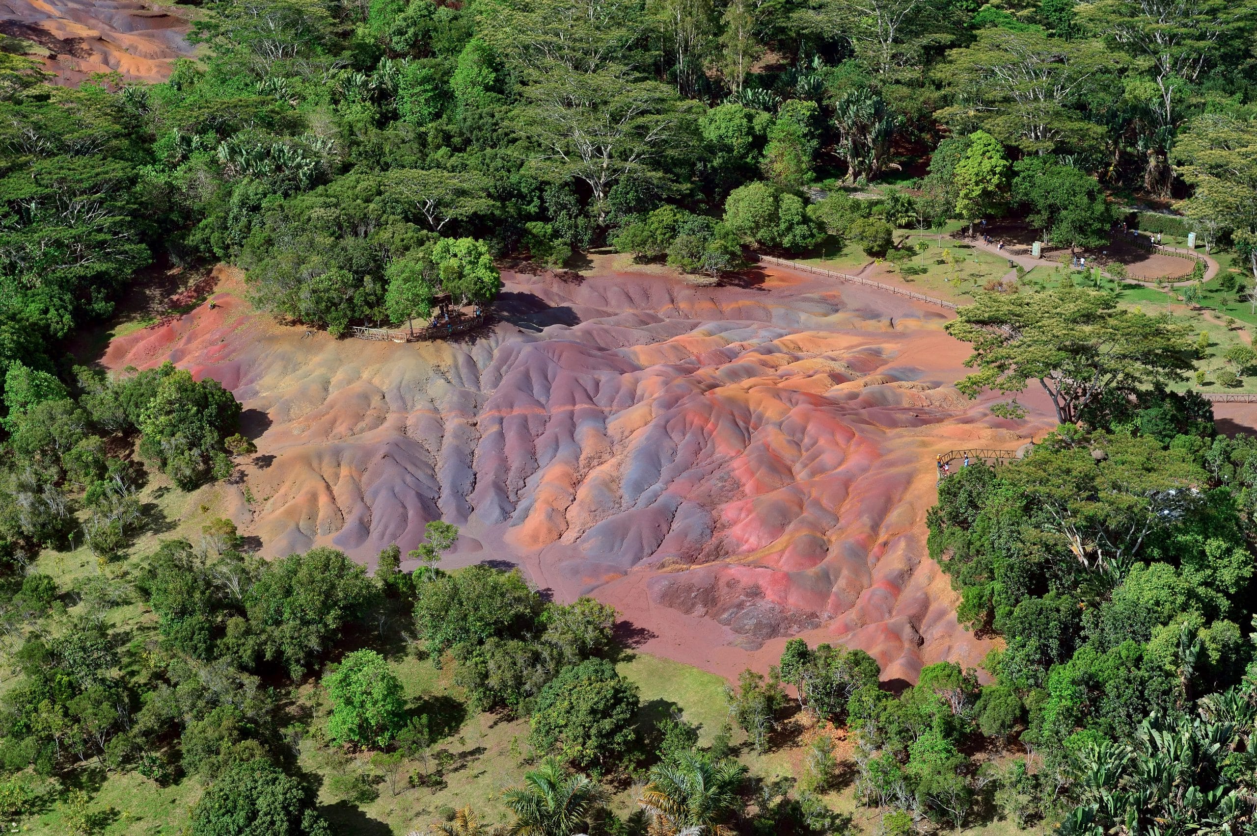 Belle Mare Beach in the east is one of the longest beaches in Mauritius, with over 10 kilometers of white sand and crystal-clear turquoise water, ideal for water sports, swimming and exploring marine life. To the west is the majestic Le Morne Brabant, a symbol of the struggle for freedom by slaves from Africa, Madagascar and India during the 18th and early 19th centuries. Slaves once hid in its caves, protected by isolated cliffs. It is said that after the British passed the Slavery Abolition Act in 1834, authorities went to Le Morne to inform the slaves that they were finally free. However, when they saw the soldiers approaching, the slaves panicked, climbed to the mountain’s peak, and jumped to their deaths. Le Morne Brabant was recognized as a UNESCO World Heritage Site in 2008, not only for its tragic history and unique ecosystem but also for a magnificent underwater waterfall when viewed from above. From Le Morne Brabant, a 15-kilometer drive east along the B9 road leads to the Seven Colored Earth Geopark. This first and main geopark of the island is a captivating natural wonder of rainbow- colored sand dunes covering about 8.5 hectares surrounded by a lush, tropical vegetation.