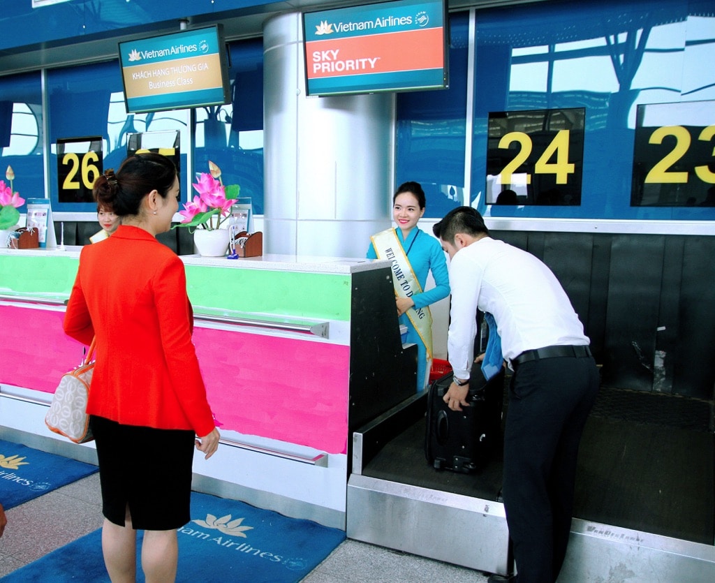 Vietnam Airlines’ staff will greet you at the aircraft door (if a passenger boarding bridge is available) or at the terminal entrance (in case you reach the terminal by bus). If you are traveling on an international flight, Vietnam Airlines’ staff will assist you in completing immigration procedures; getting checked baggage off the conveyor belt; and carrying it to your car in the most dedicated and attentive manner.
