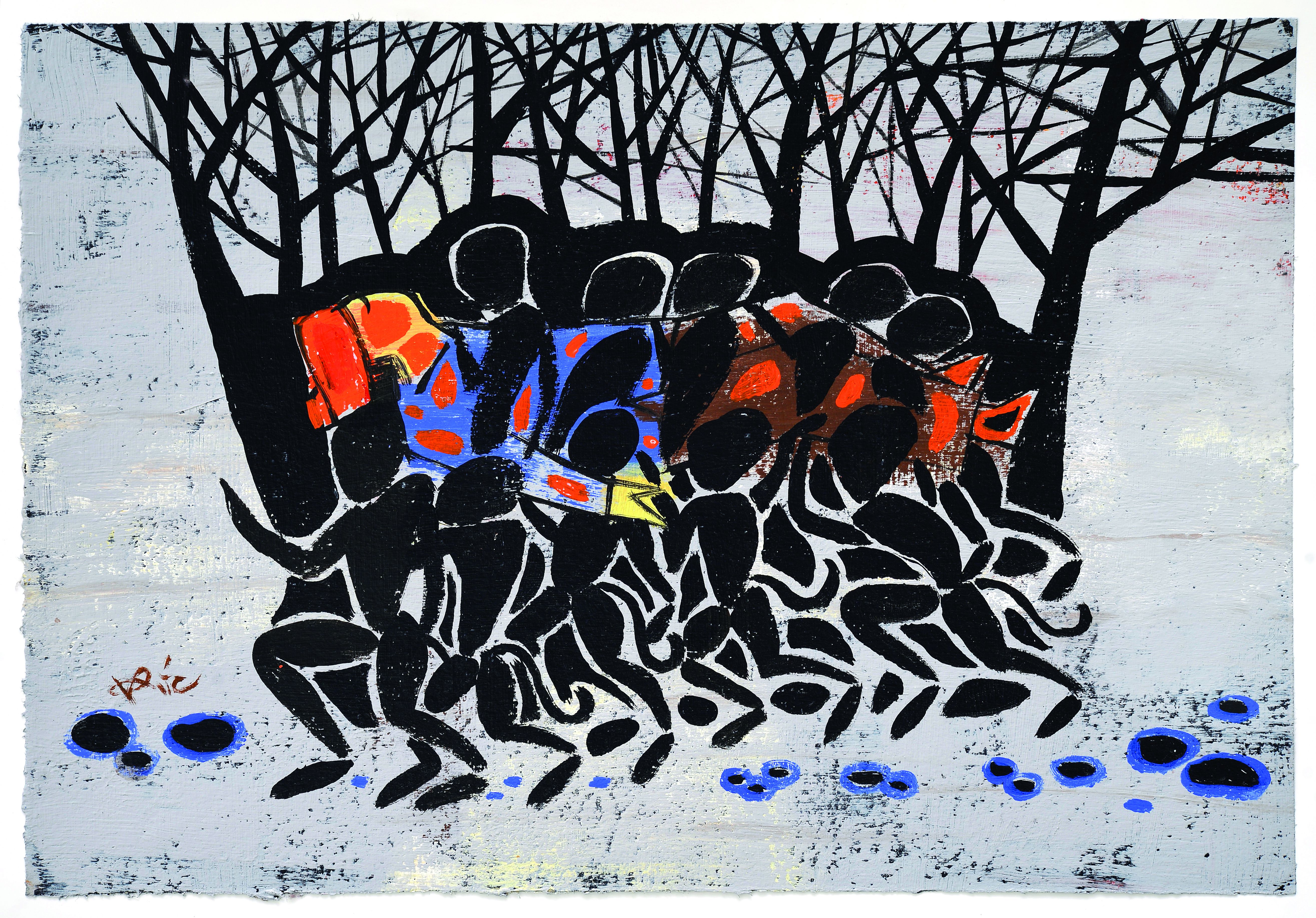 After hearing about the monkeys, the older brother immediately borrowed a machete and walked into the forest. It was a moonlit night and he pretended to sleep under the same huge tree. Soon, the monkeys gathered around him. Again, they thought the man was dead and carried him off to bury him.