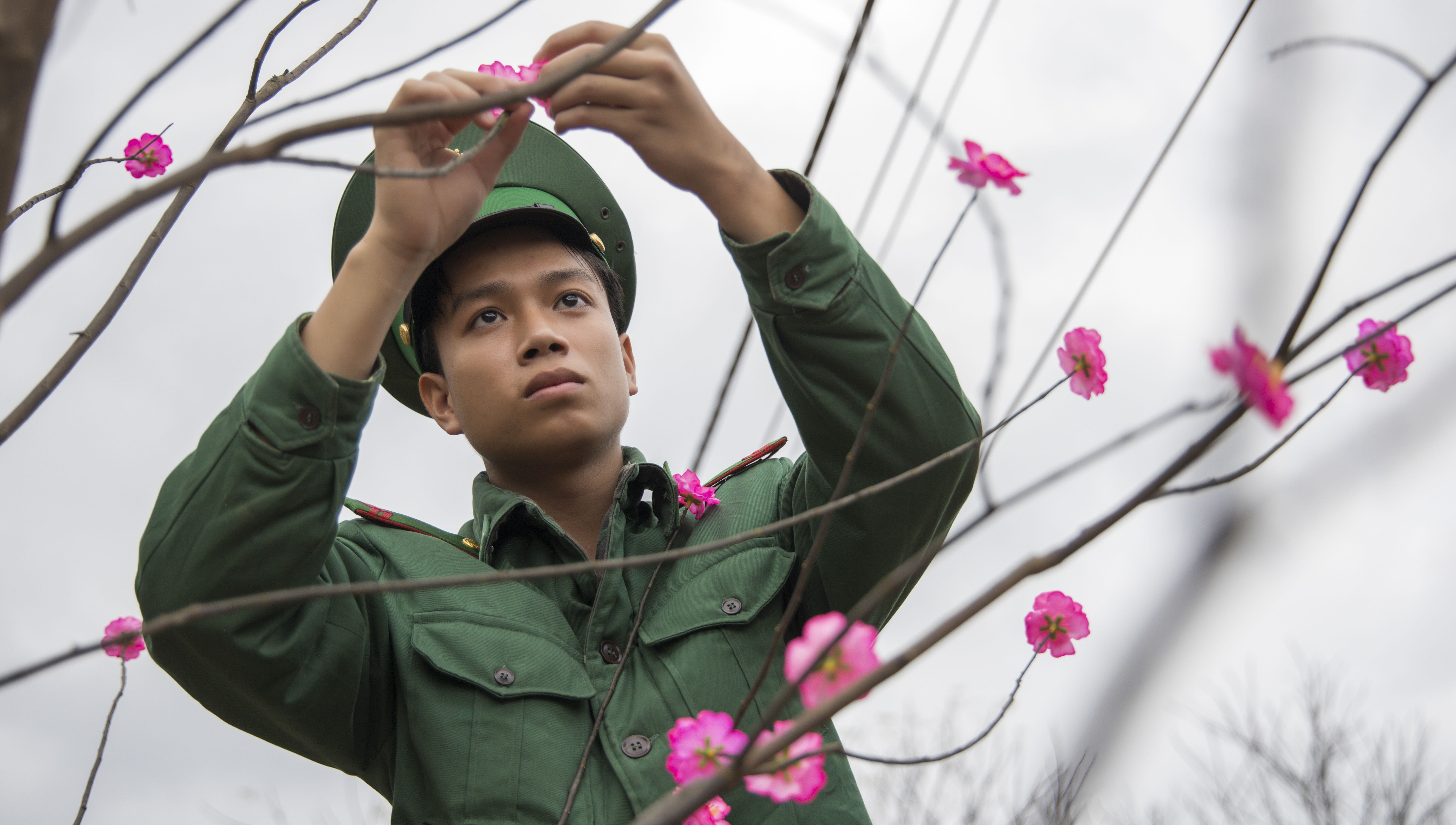 Having made our way over the steep mountain passes, we arrive at the village around 10 AM to find the market ground bustling. Volunteers, villagers, and soldiers hurriedly unload goods from the vehicles, carefully arranging each Tet gift in the pre-built bamboo stalls.