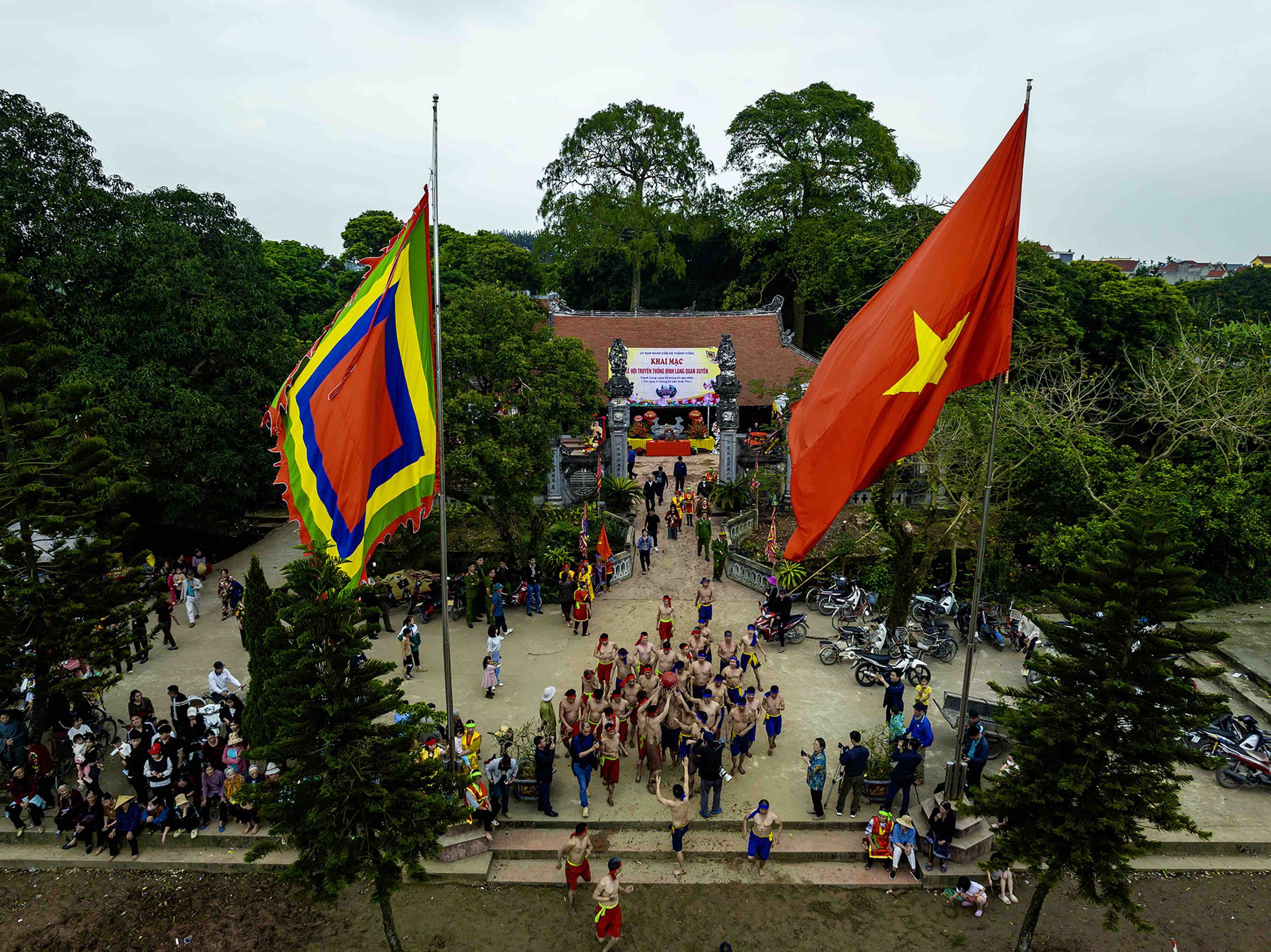 To this day, the festival retains many cultural values unique to the countryside around the Red River, such as rituals of carrying the royal tablet, fetching water for prayers, and wrestling matches.