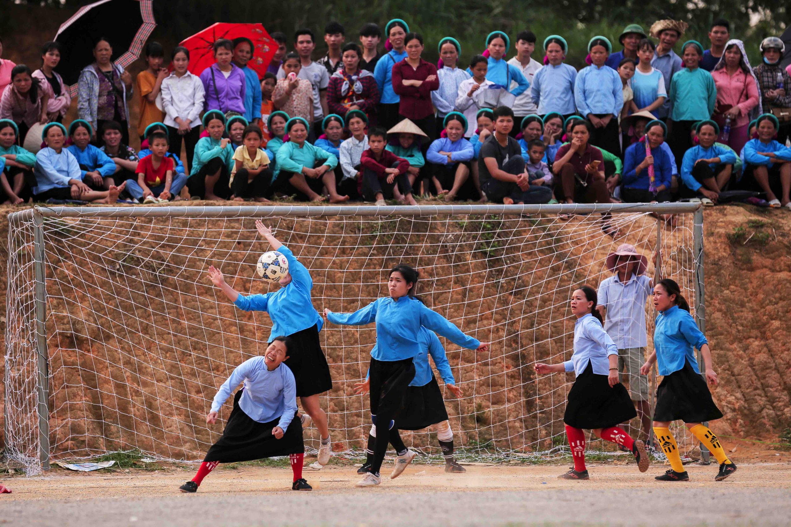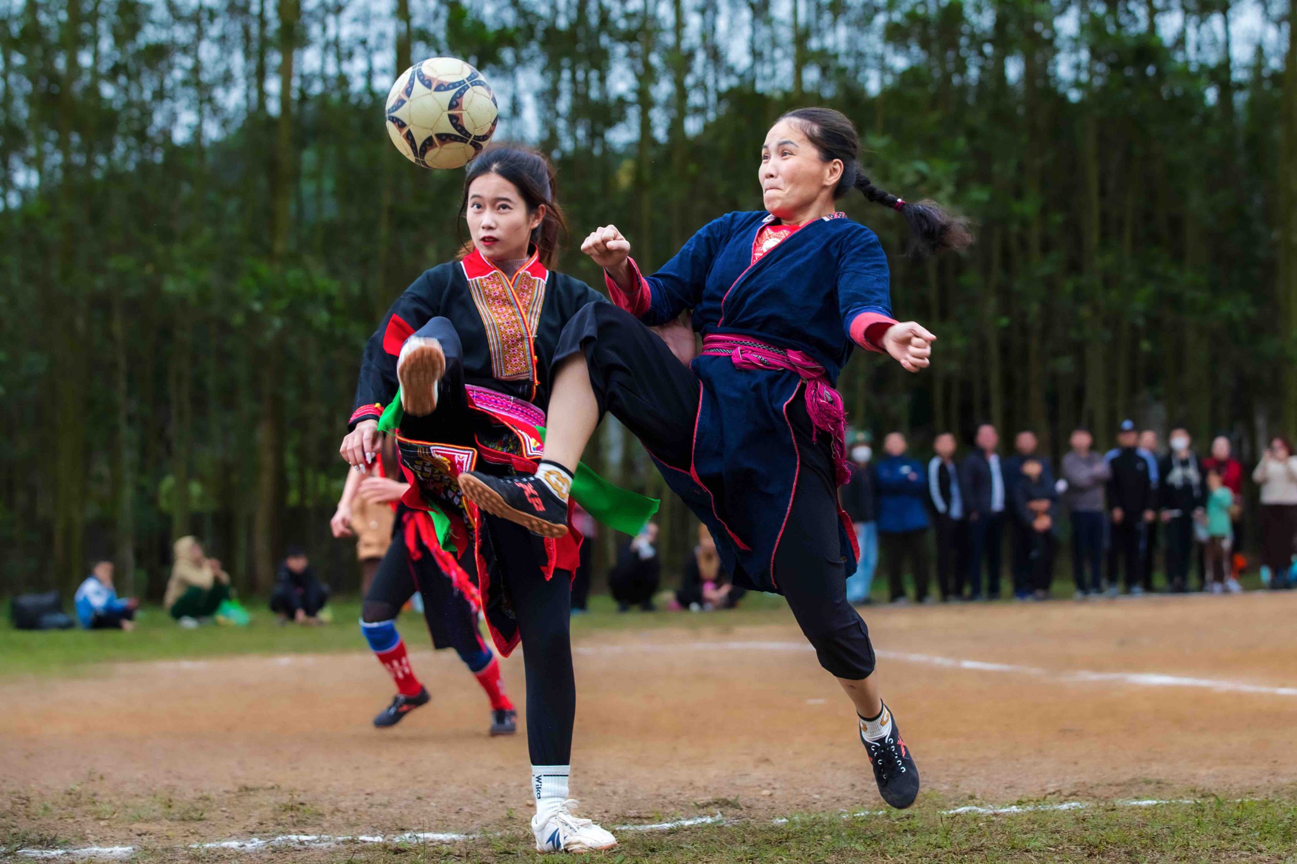 The border district of Binh Lieu is regarded as the cradle of ethnic minority women’s football. Huc Dong commune is the hub of women’s football in the region, with six clubs from different hamlets drawing numerous female players for training and district-level competitions. After long hours working in the fields or making vermicelli—a traditional craft of the San Chi people—women come together to play football to relax and improve their health. They share that playing in traditional attire uplifts their spirits and celebrates their ethnic heritage.