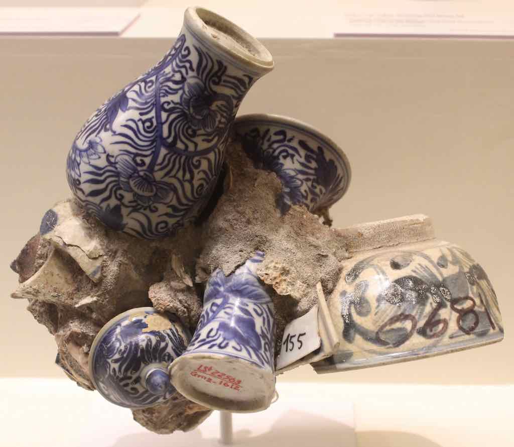 The Binh Thuan shipwreck was excavated in 2001 and 2002, yielding 60,000 artifacts. Most of these were blue-painted white-glazed ceramics and multicolor-glazed pottery, produced by the Zhangzhou (Fujian) kiln and the Guangzhou (Guangdong) kiln in China in the Wanli period (1573 – 1620) of the Ming dynasty. The ship is believed to have belonged to the Dutch East India Company. It was transporting Chinese ceramics to Europe when disaster struck and it sank in Vietnamese waters.