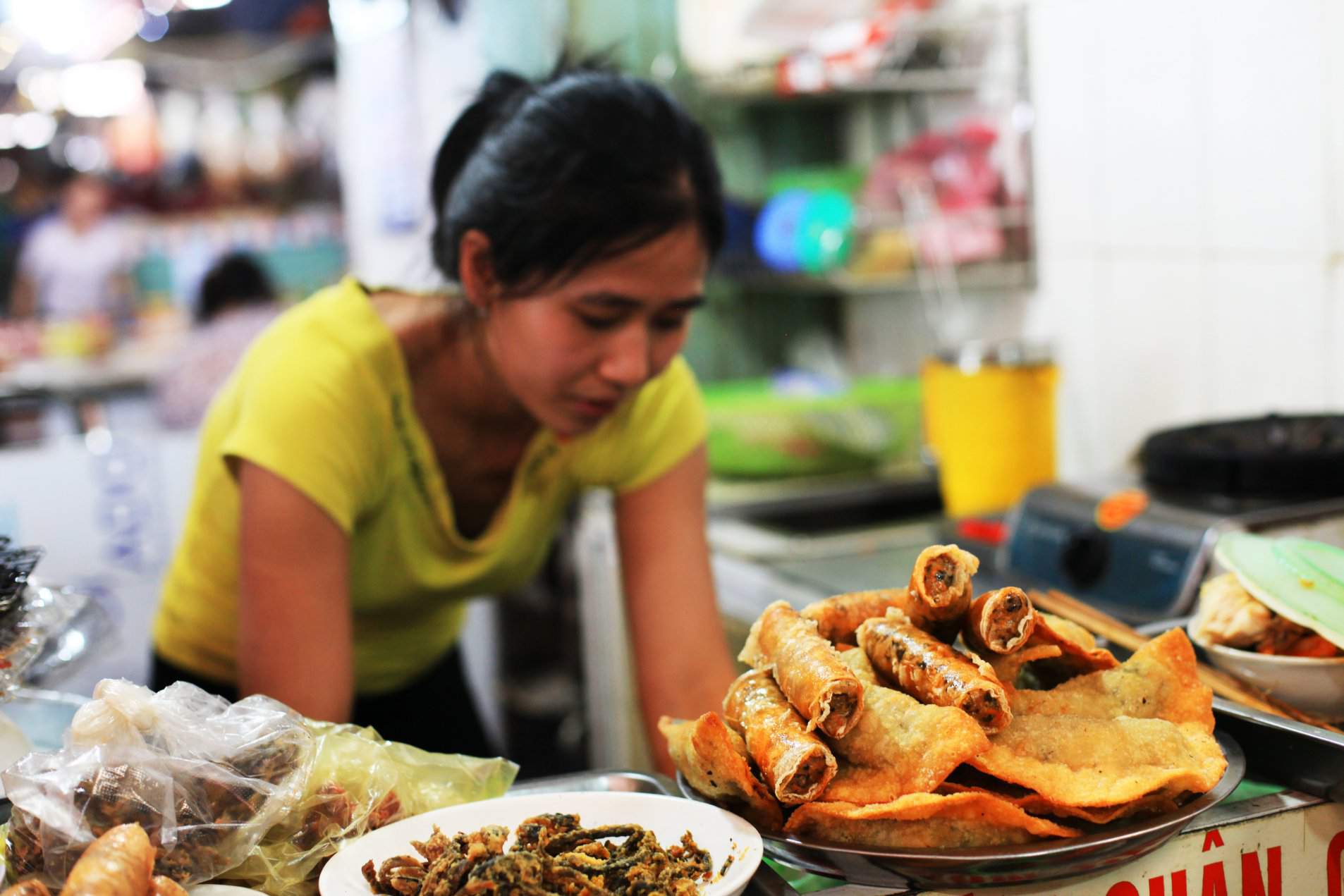Here food courts are crammed side by side in a riot of enchanting colors and flavors. From round Vietnamese crepes made of crunchy deep-fried rice dough filled with prawns and crabs to wrapped rice cakes stuffed with minced pork and chopped wood ears (moc nhi), covered in transparent filtered rice. Other unique foods are available, such as shredded pork skin with sesame, rolled rice cakes stuffed with prawns or sesame-coated pancakes.