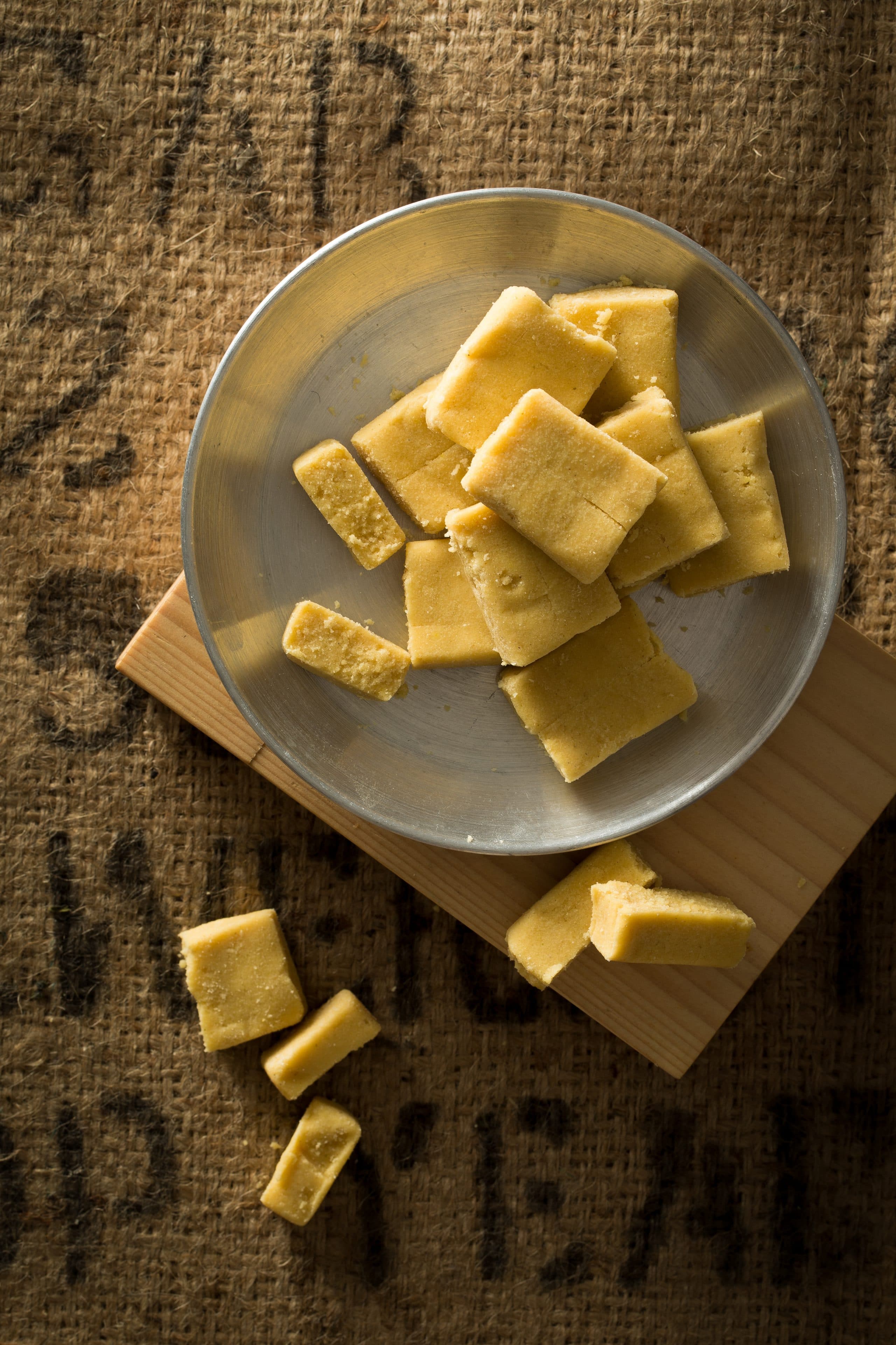 Enjoyed nationwide, green beans cakes originated in Hai Duong. These cakes are yellow on the outside and soft and smooth on the inside. They are made of flavorful green beans mixed with pomelo essential oil. The green beans are peeled and minced, then mixed with sugar to make these simple yet delicious cakes, which melt in your mouth and are especially delicious with tea.