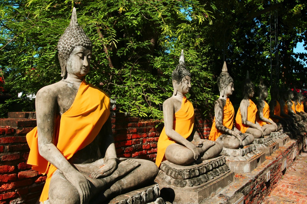 Just over an hour’s drive from Bangkok, Thailand’s ancient capital Ayutthaya offers a peaceful atmosphere, dotted with remnants of old royal palaces and ancient temples. Built in the 14th century, Ayutthaya was the capital of Thailand for over 400 years. It was a thriving political, cultural and commercial center before being ravaged by warfare. Thirty-three kings of five dynasties reigned here. It was home to 300 temples with sparkling gold spires. A source of pride long ago, Ayutthaya remains loved by Thai people today, although most of its main buildings lie in ruins.
