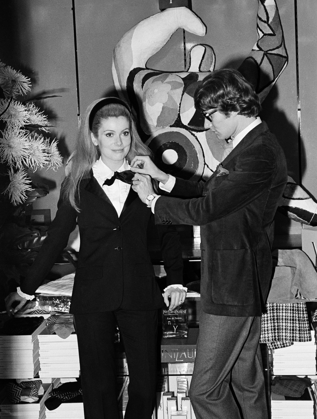 Saint Laurent’s initial designs felt both novel and familiar: dresses and coats not clinging to the wearer but softly flaring, allowing the body to almost disappear within the garment. Over time, he designed many outfits that resonated with their progressiveness and timelessness. He was the first to transform men’s Le Smoking suits into tuxedos for women. Saint Laurent also designed daringly sheer dresses and blouses, revealing women’s skin through delicate black voile. He showed his curiosity for art and culture with designs inspired by Mondrian’s paintings and haute couture collections influenced by Japanese and Indian cultures. All these innovations laid a solid foundation for global fashion.