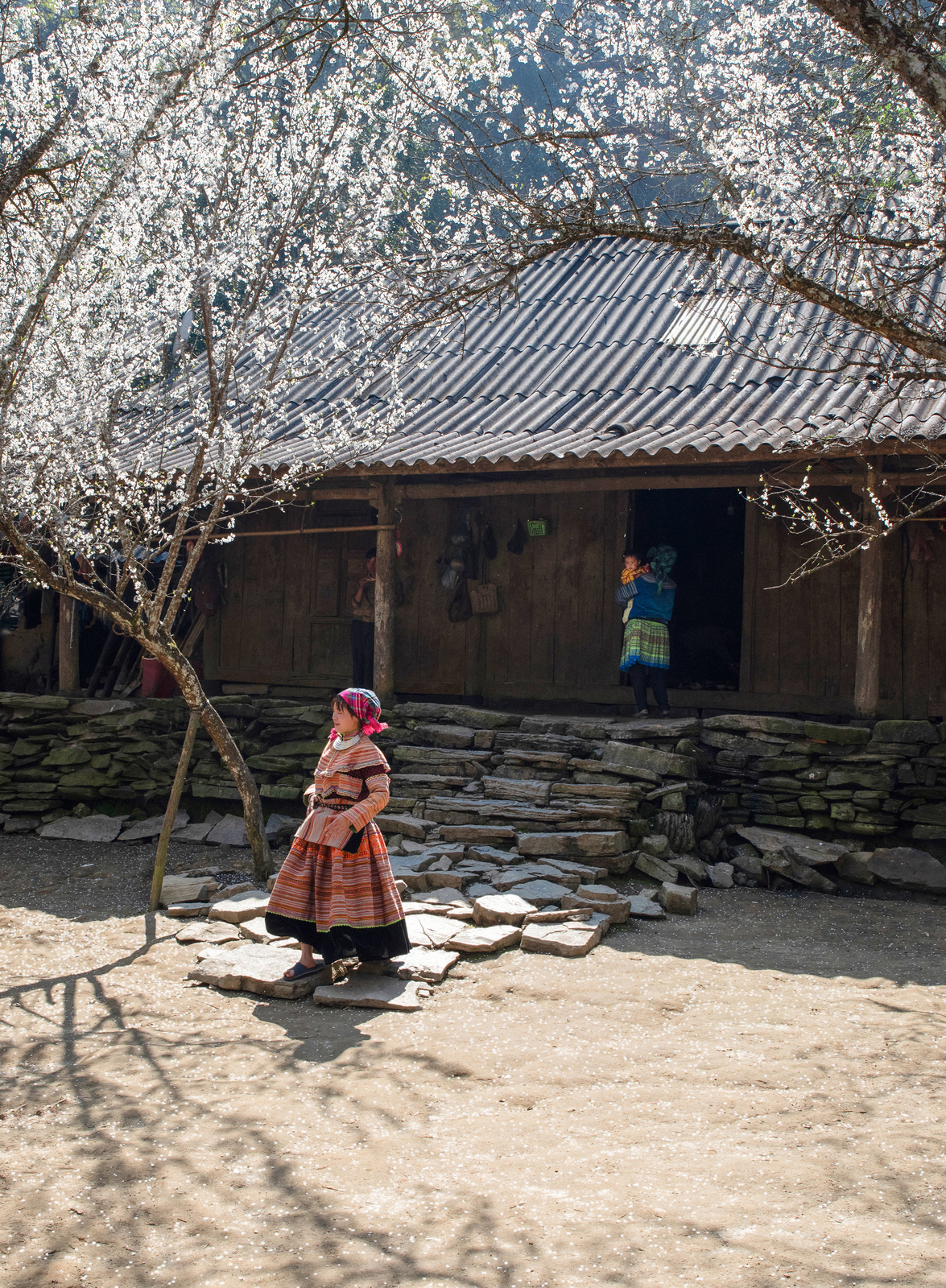 The H’Mong people of Ta Van Chu village cultivate various crops, including tea, plums, and medicinal herbs. In recent years, plum cultivation has increased as the native plums have become more popular in the market. Importantly, local tourism products related to plums have helped to boost residents’ incomes. Under the ecological village model project of Lao Cai province, members of the H’Mong community undergo training in community-based tourism, particularly in how to host guests in homestays. Therefore, visitors are generally satisfied with the food and accommodation, which are adequate without being extravagant, and offer a warm and authentic experience of the highland culture. Don’t hesitate to join the locals in enjoying a glass of warm corn wine, or generously offer them a small payment when borrowing their vibrant traditional costumes to pose for photos amidst the flowers.