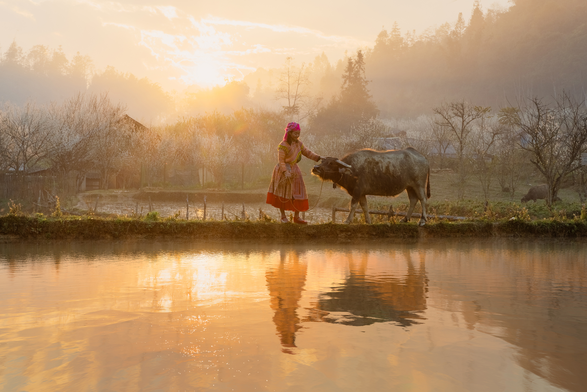 Spring’s arrival in Ta Van Chu village is marked by hillsides blanketed in white blooms. Blossoms line the pathways into the village and surround the fences of local houses. The village and hillsides become more dreamlike and mystical than ever, whether in the early morning mist or as the setting sun casts its gentle light.