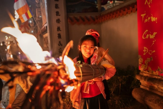 Families with no representative to carry the sacred flame will be visited by their torch-bearing neighbors. In this way, the sacred flame also helps to strengthen ties between villagers. The gentle people of La Xuyen village keep the sacred flame – a symbol of hope and faith – burning for the three days of the Lunar New Year.