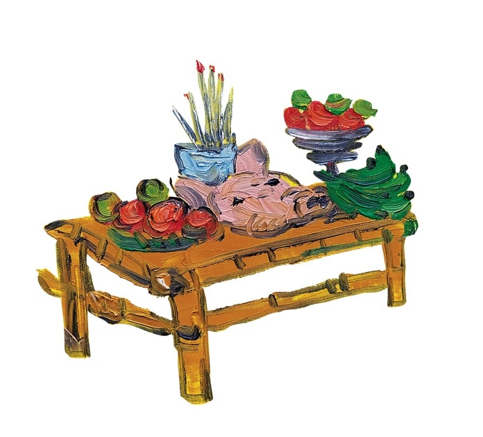 The old beggar dragged herself to the village crossroads, where she met a widow and her child coming home from the market. Seeing this miserable old lady, the widow fed her some leftover rice.