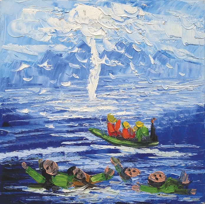 Miraculously, the widow’s shack, chicken coop and pigsty all floated on the raging water. Remembering the rice husks they’d been given, the mother and her child threw them into the waves. The husks turned into boats. The pair boarded these boats and floated around, saving as many people as they could from the raging flood-water.