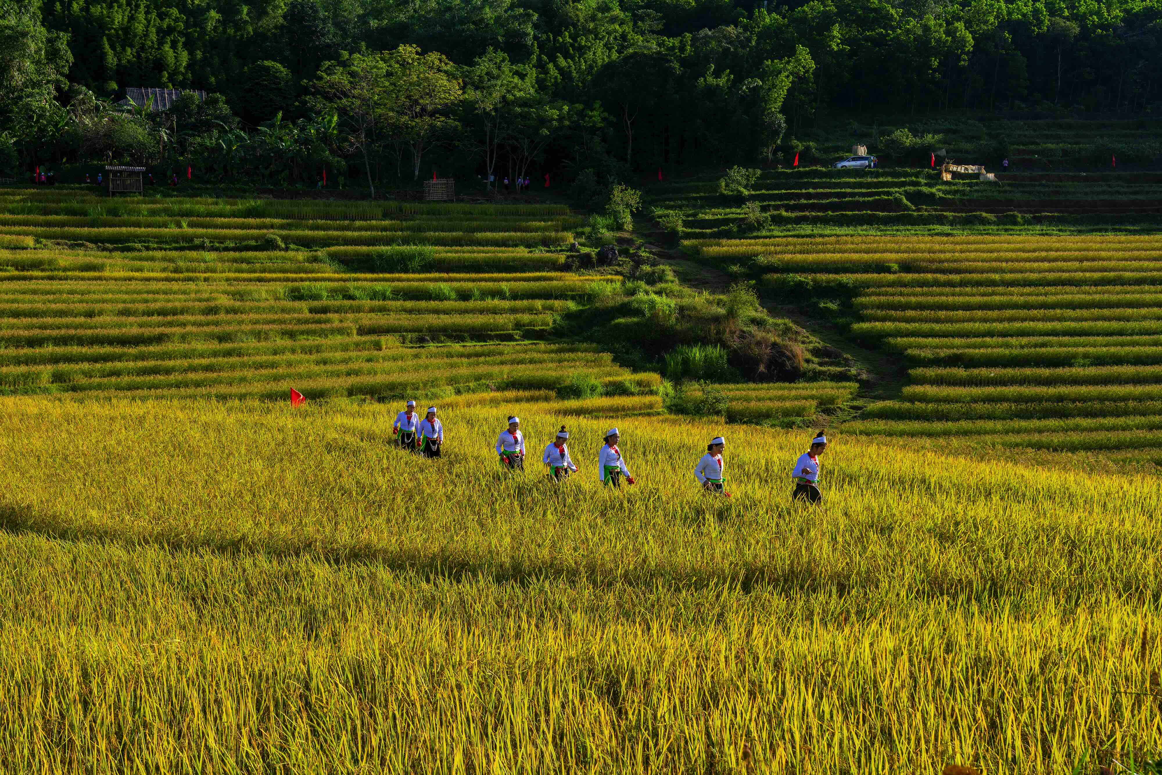 Having arrived in Thuong Coc Commune at the height of the ripe rice season, I was struck by the beauty of the semi-mountainous landscape, where terraced fields rolled like swathes of golden silk, stretching toward deep blue-green forests and a horizon of tinted green, beneath lazy white clouds. It was truly an ink-wash painting, woven by heaven and earth in the sunny, breezy autumn.
