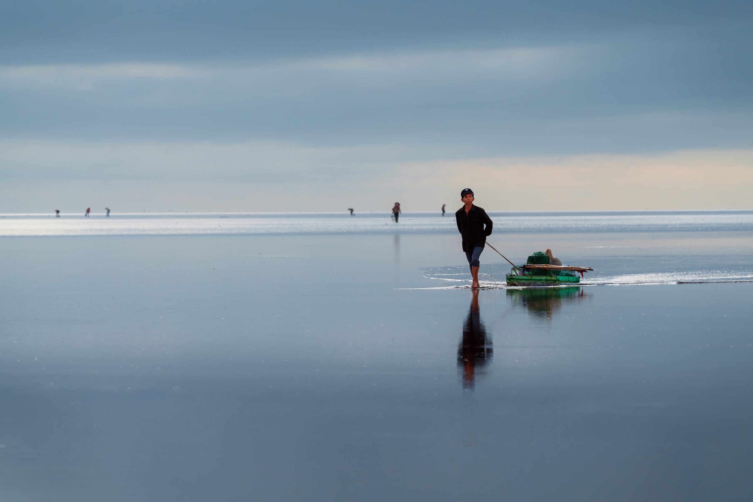 Time and weather are the most essential elements creating this “boundless” effect. On days when the tide is high and the winds are strong, wave after wave crosses the sea’s surface. High tides also make it difficult for people to move around. Thus, tidal elevation is an important element that requires consideration, as moving 3km to the land takes some time when the tide rises quickly. On the other hand, when the tide remains low and retreats too far toward the sea, the beach will look much like any other beach. The ideal elevation is when the tide is ankle-high. On days like this, you will find fishermen looking for razor shells on the beach. The best weather to witness this phenomenon is under a clear sky with no wind and few clouds. Such days are often seen between June and October every year. What’s keeping you from visiting this infinite sea? Pack up your bags and visit Quang Lang Beach this summer!