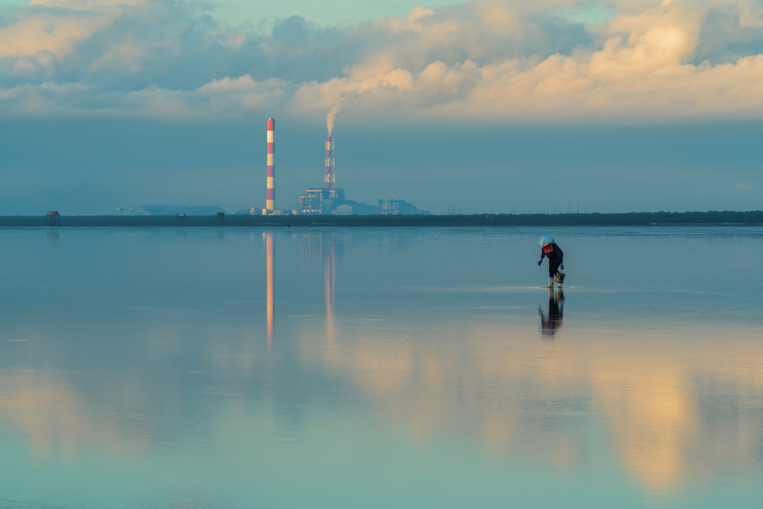 Even as the sun is rising, the sea continues to boast of its magnificence, with its surface reflecting the luminous early morning glow. High above, golden clouds begin to fade into white, and the sky turns clear blue. The sun illuminates all things in sight, now shedding light onto the faces of the once-silhouetted fishermen diligently searching for razor shells after the tide has retreated. The change in temperature invites gentle breezes, stirring up small waves that slowly break the giant mirror.