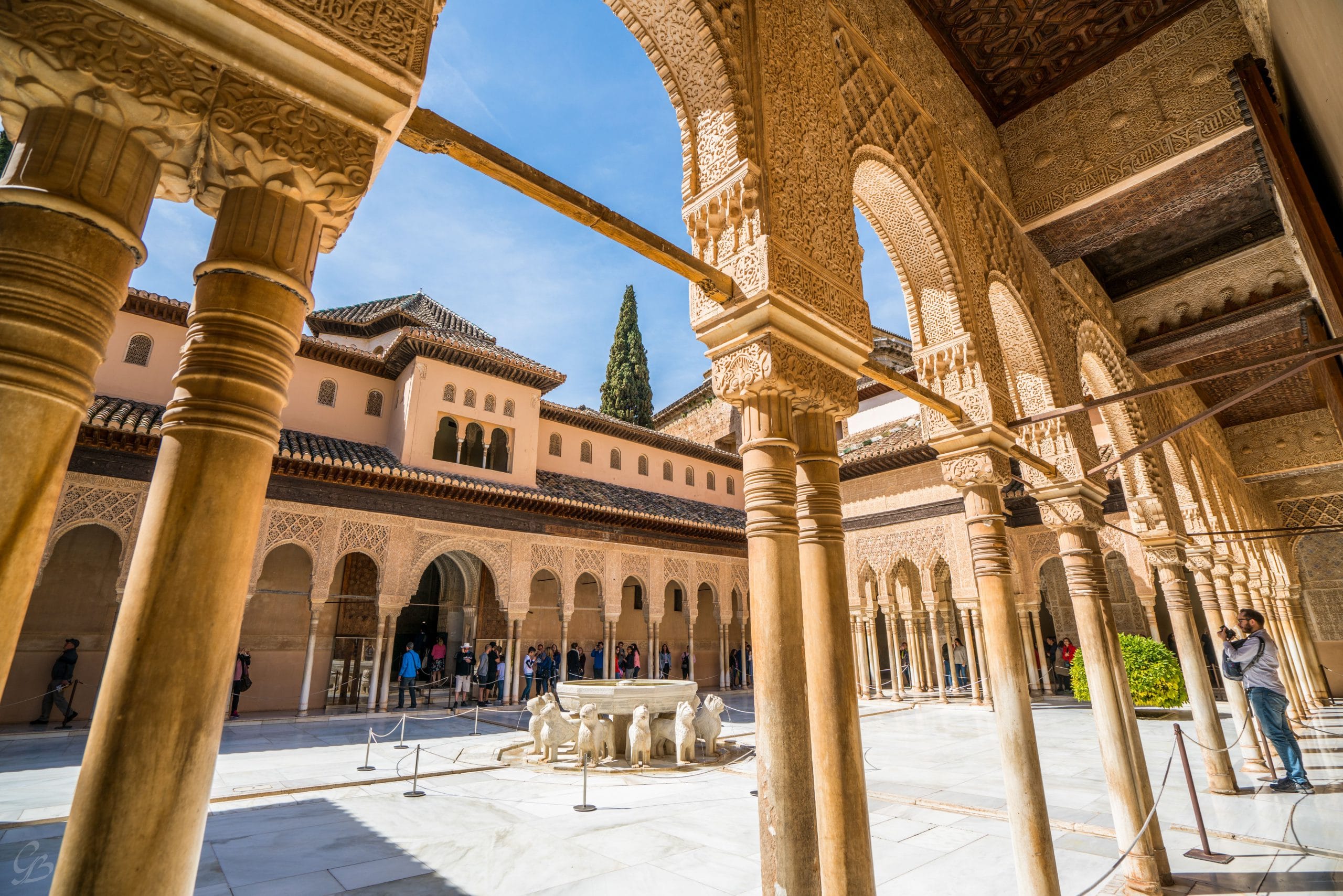 The famed Patio de los Leones (Court of the Lions) in the Nazaries Palaces