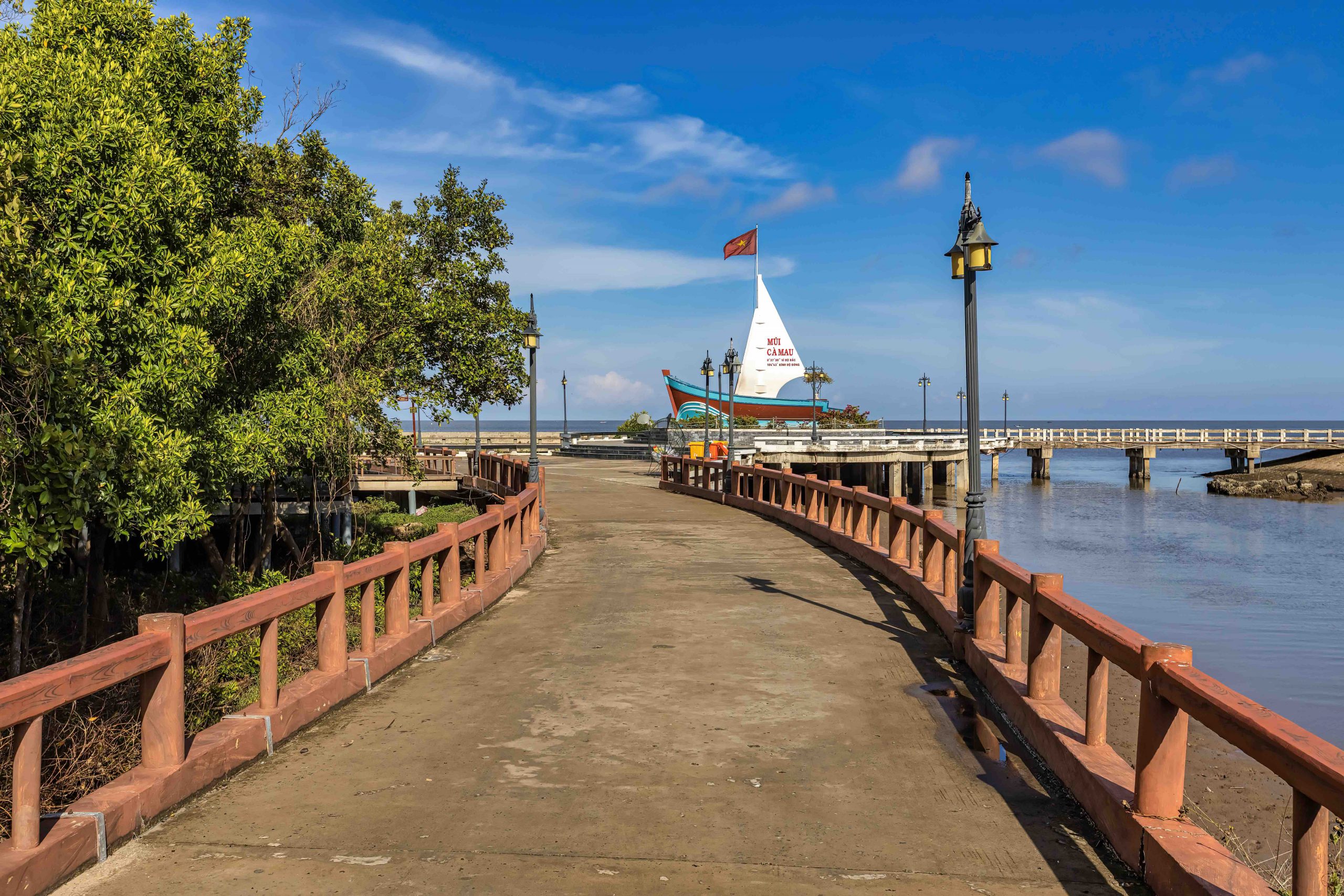 The area also features the Cape Ca Mau Cultural Park, which spans 150 hectares. Key sites include a panorama of a ship sailing out to sea, the National Coordinate Landmark GPS 0001, Lac Long Quan Temple with a statue of Mother Au Co, and the mainland endpoint of the Ho Chi Minh Trail (Km2436), which runs from  Pac Bo Cave in Cao Bang to Cape Ca Mau.
