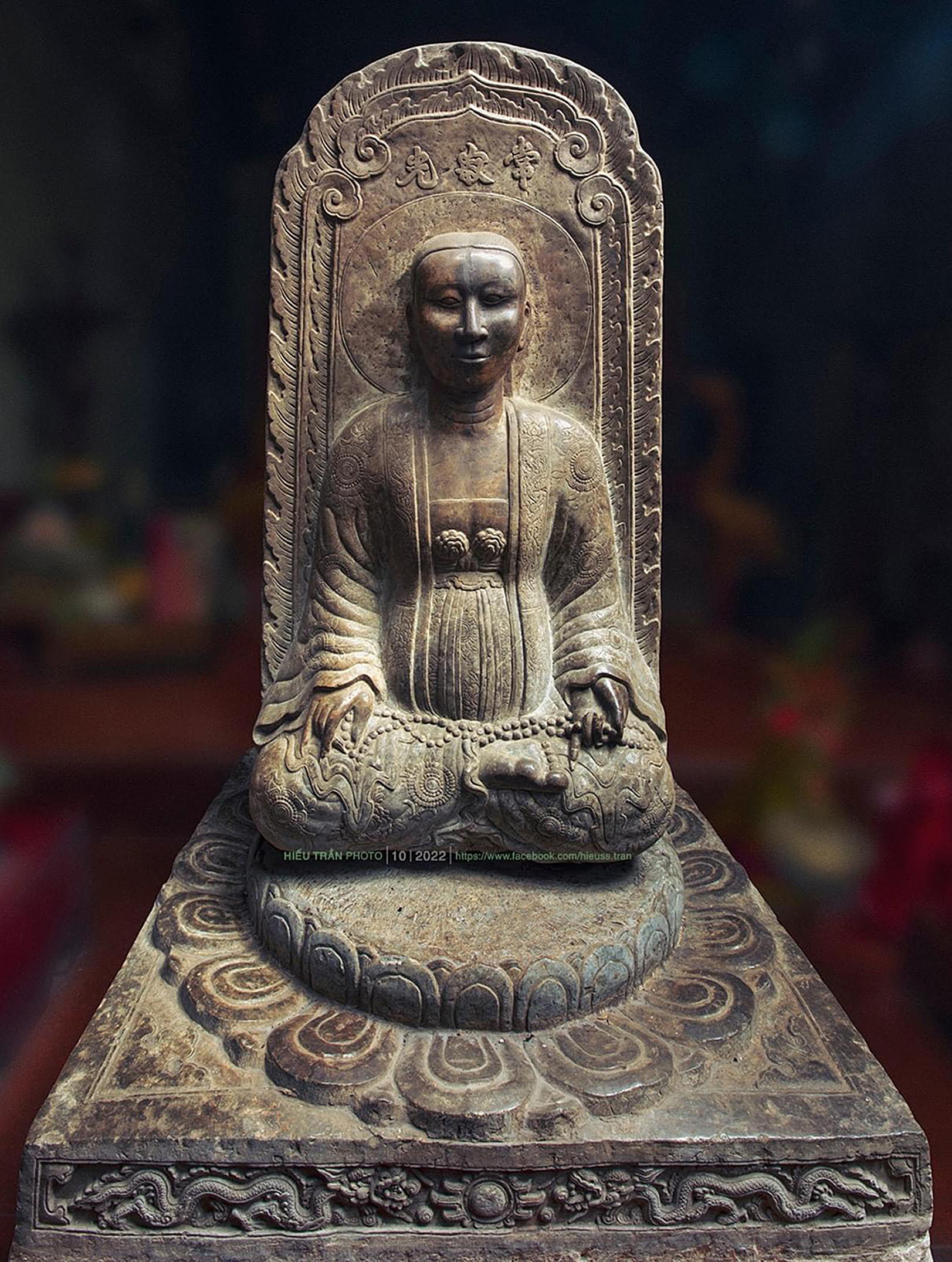 Chrysanthemums are also present in a relief of Princess Mac Thi Ngoc Lam (16th century), preserved at Pho Minh pagoda in Nam Dinh province. The relief captures the viewer’s attention with 18 round marigolds with large petals and square florets that adorn the princess’s outer coat. In contrast, the flowers at her feet distinctively resemble golden everlasting chrysanthemums. The noble spirit of the princess is also represented by the knot on the front of her chest, which resembles two marigolds with its ruffled petals.