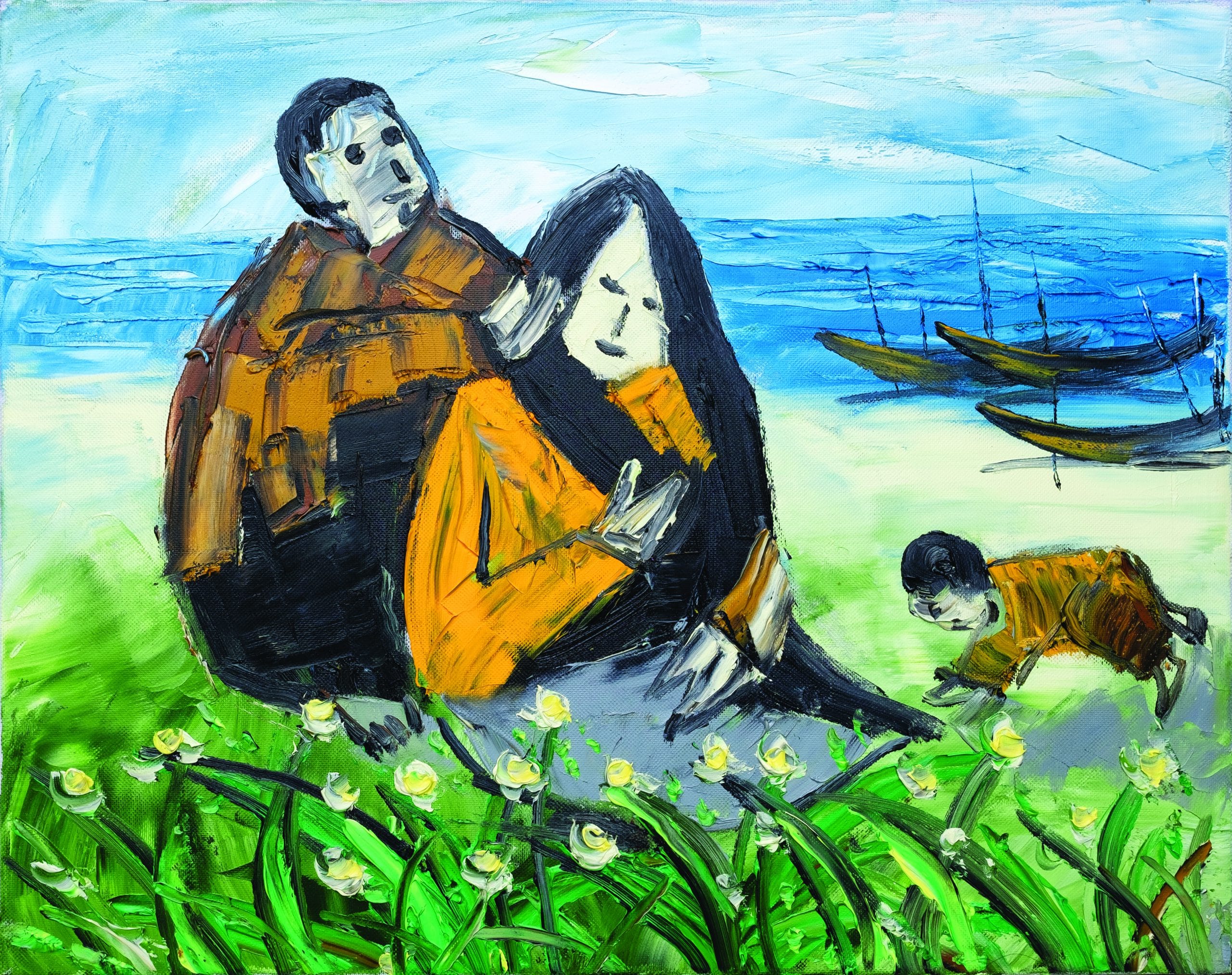 Longing for her husband, the wife languished away. Why had he sailed away when other men returned after a long day of fishing? He was hard-working and loved his wife and child. It was impossible to understand. Every afternoon, she carried her child up a big rock by the shore and gazed far and wide toward the dim horizon.