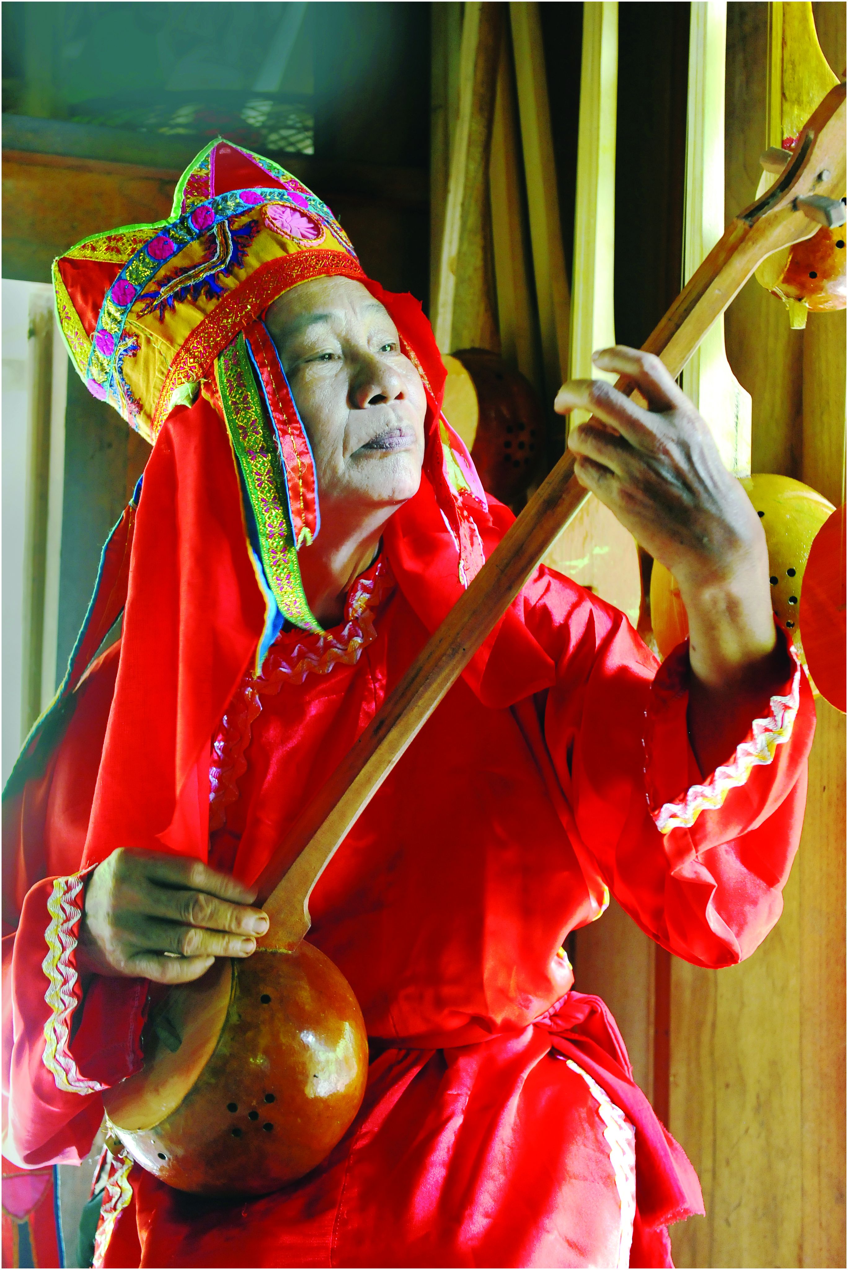 The musical accompaniment for Then singingis thedan tinh- a stringed instrument consideredsacred due to its association with religiousactivities. To commence the ceremony, Thenmasters dress in formal attire and sing whileplucking the dan tinh and waving a paper fan.