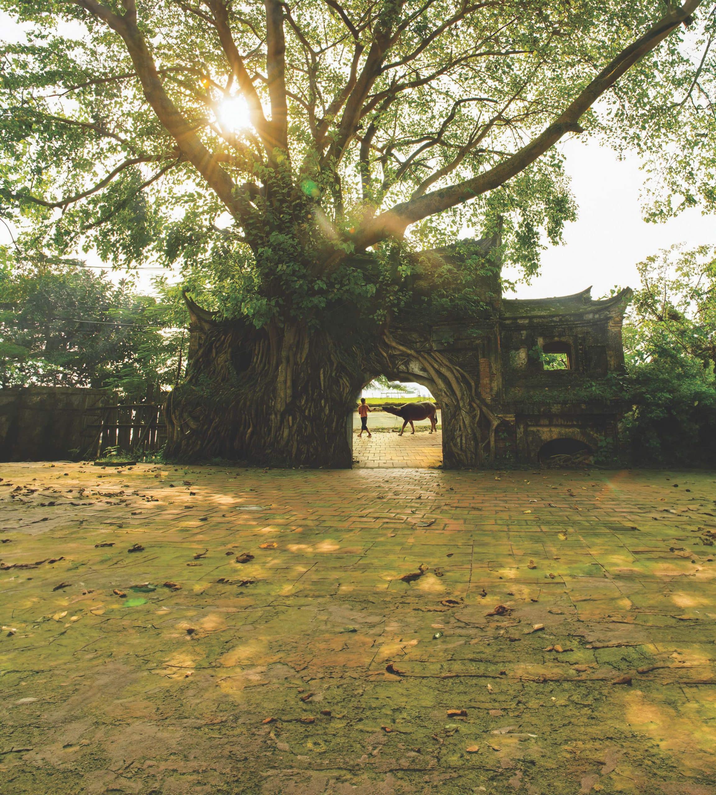 From its role as a territorial marker, the shade cast by an ancient banyan tree creates a romantic setting for the village, serving as an emotional anchor for those far from home who are homesick: “The village boys who go to the army always remember their homeland, remember the water well, remember the banyan tree.” (Excerpt from the song “Tinh dong chi” – composed by Minh Quoc, verse by Chinh Huu).
