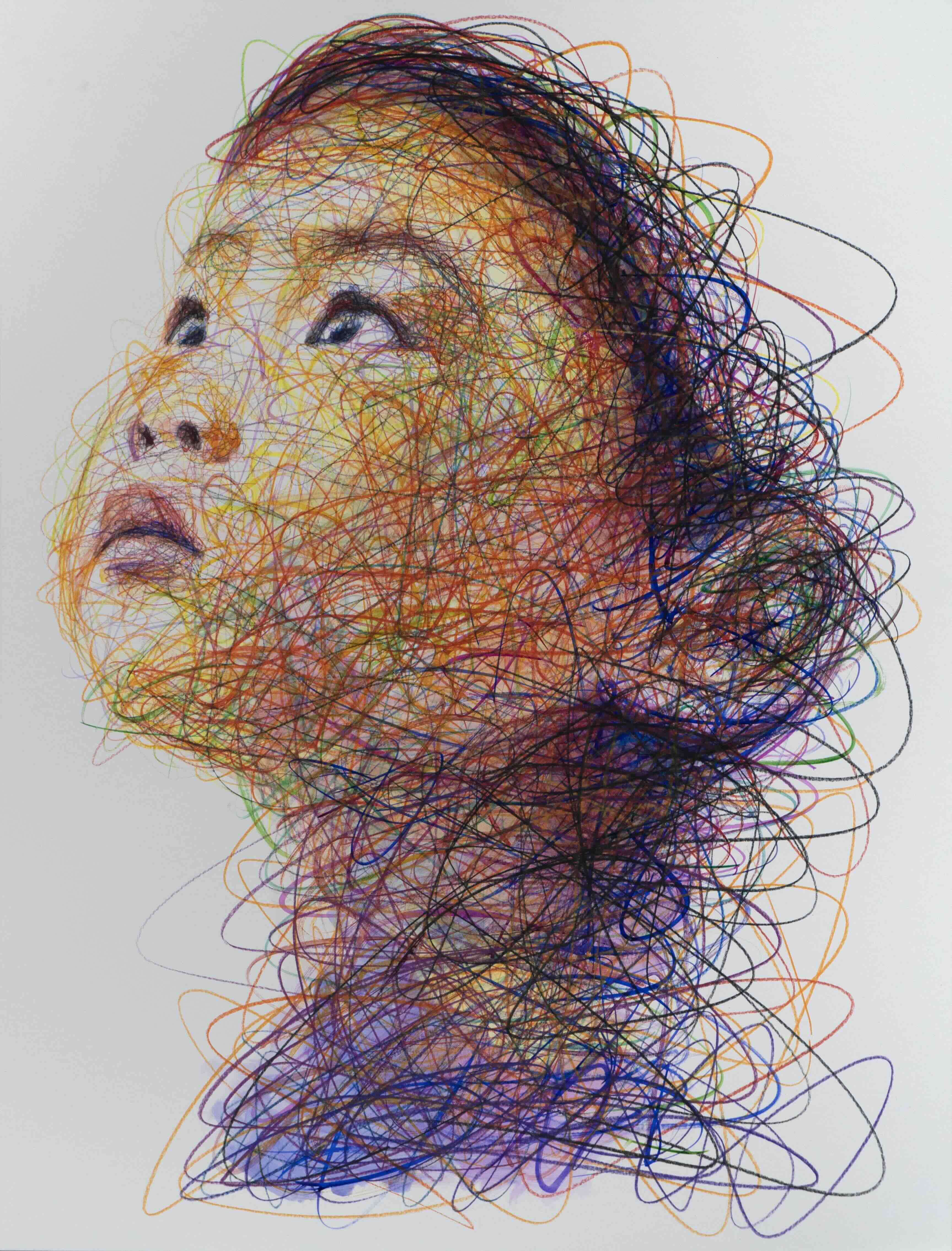 To me, those strokes represent movement through life. At first glance, the eyes and their gaze catch your attention. But then, as you look deeper, you see vertical, diagonal, horizontal lines. That is the journey of life – mine, yours, all of ours – moving from darkness into light.