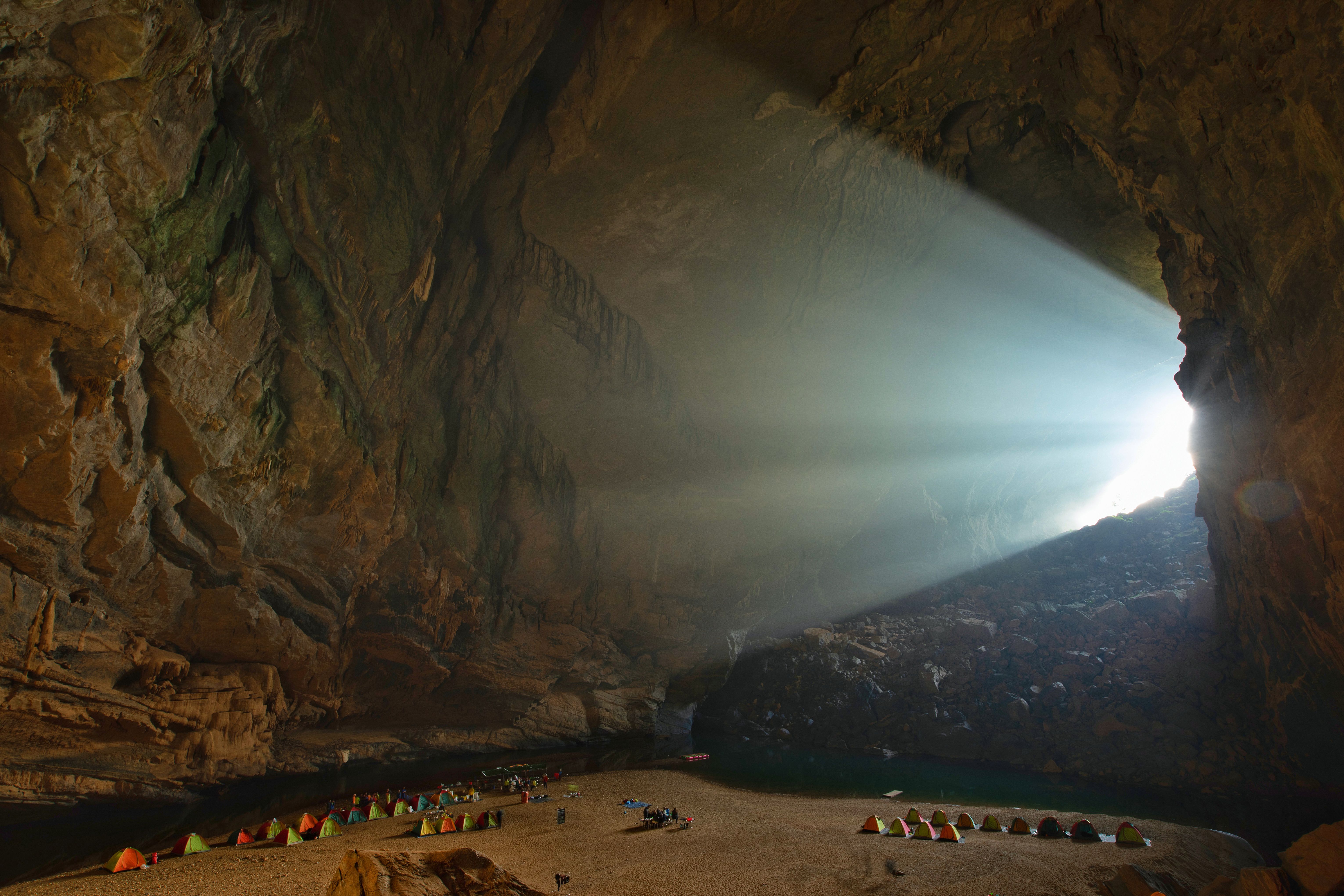 Nestled in the core of Phong Nha – Ke Bang National Park, Son Doong is said to be the largest cave in the world. Tucked in a fault line of the Truong Son Range and tunneled out by the Rao Thuong River over millions of years, Son Doong is an enormous cave passage hidden deep beneath the karst mountains. The cave stretches nearly nine kilometers long. Some parts are as wide as 160m and over 200m high. In the ceiling’s fractures, limestone eroded over time, leading to collapses that formed mysterious sinkholes – or gateways to the outside world.