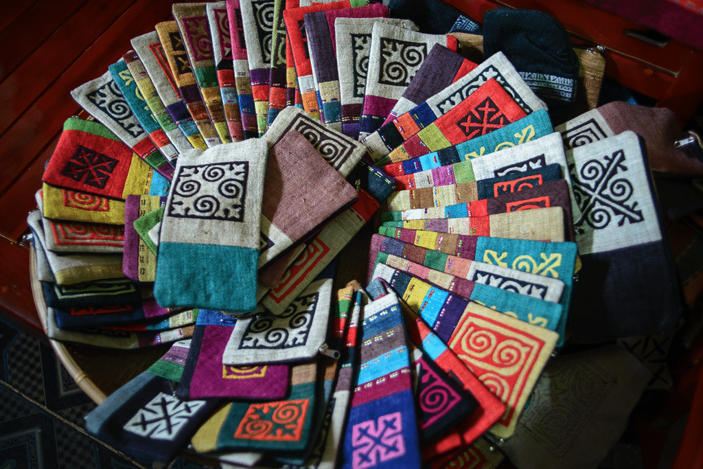 Founded in 2001, the Hop Tien Flax Co-op is now 15 years old. There are 130 members and nine different production departments. Lung Tam linen is sold in Vietnam and exported to France, the US, Italy, Switzerland and, most recently, Japan. I met Ms. Mai, a woman in her fifties who was very agile and passionate about her work. She told me how top designers such as Minh Hanh sought out the co-op’s fabrics. She recalled the early years when overseas visitors took delight in the H’Mong cloth, and the times she traveled to Hanoi to participate in cultural festivals and promote her craft. These unique linen fabrics are turned into designer clothes and souvenirs such as bags, dolls, scarves and other ornaments.