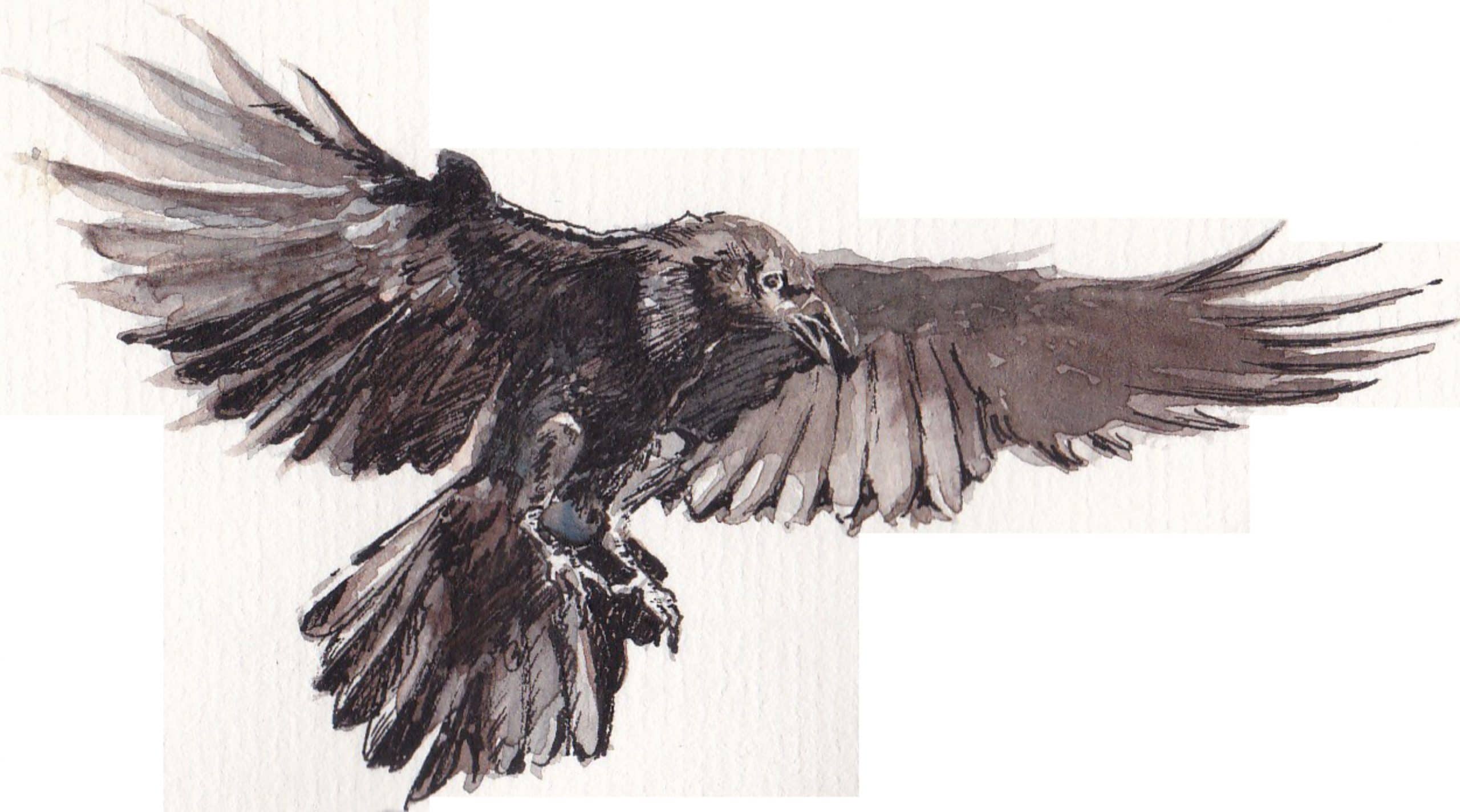 One day, the farm hand hung his wife’s portrait on the edge of a field and began to plow. He had plowed a few furrows when the vengeful raven flew down and stole the portrait. The young man yelled and chased after the bird but to no avail. The raven had already vanished.