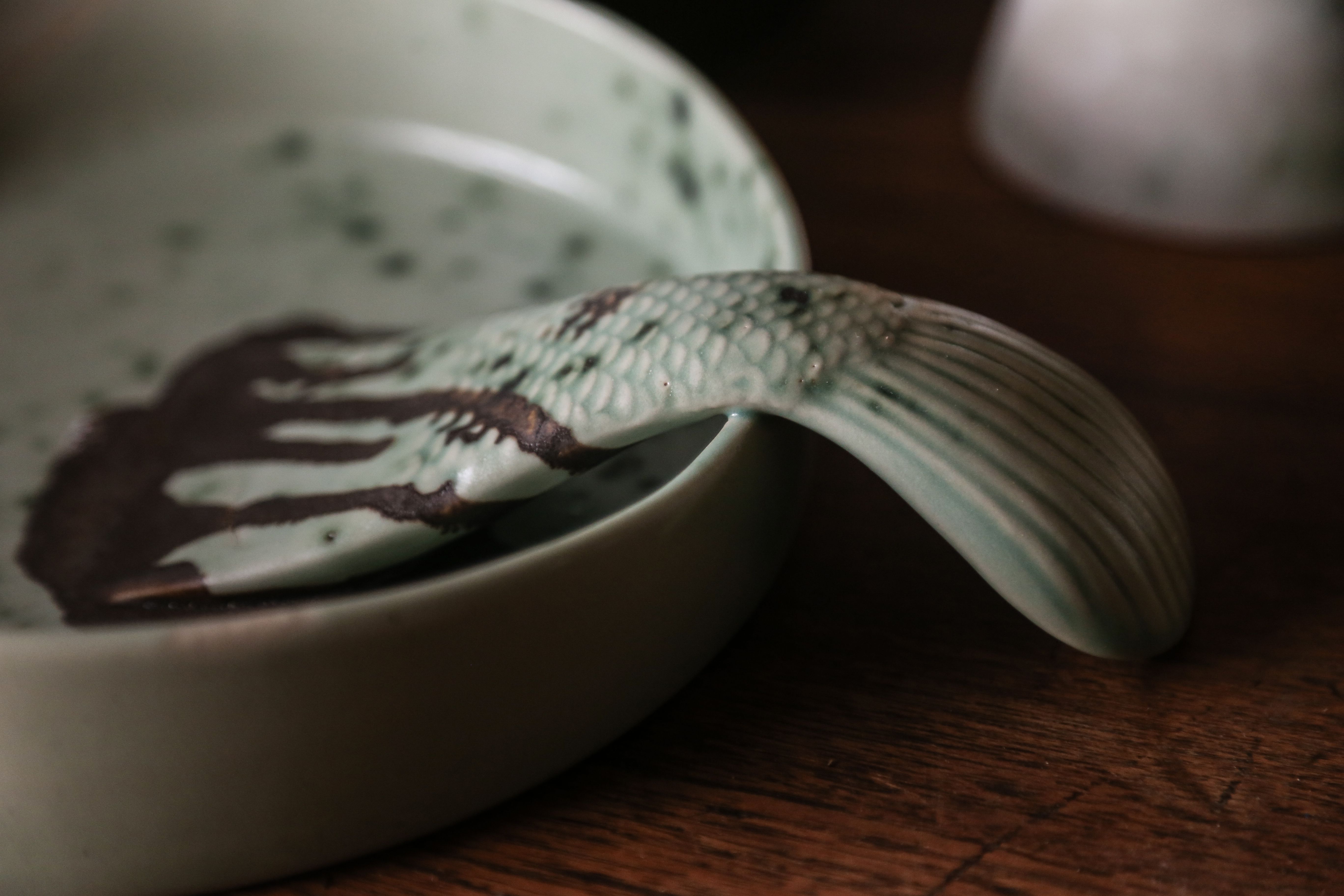 “Did you notice the pink color on the cup? It is caused by copper oxide when being mixed with glaze. At its original state, the material is almost red. The color will then gradually darken based on the amount of copper oxide being added to, and if you add too much, it will turn to a peculiar black color. Regarding the cup, after being heated with high temperature in the oven, the pink color will turn green just like the leaf at the back. But that’s just my guess, I’m not sure whether the color is going to be darker and lighter, as it needs several takes to get the desired color. Let’s wait and see how the color will turn out to be!” (22/6//2019, taken from the diary).