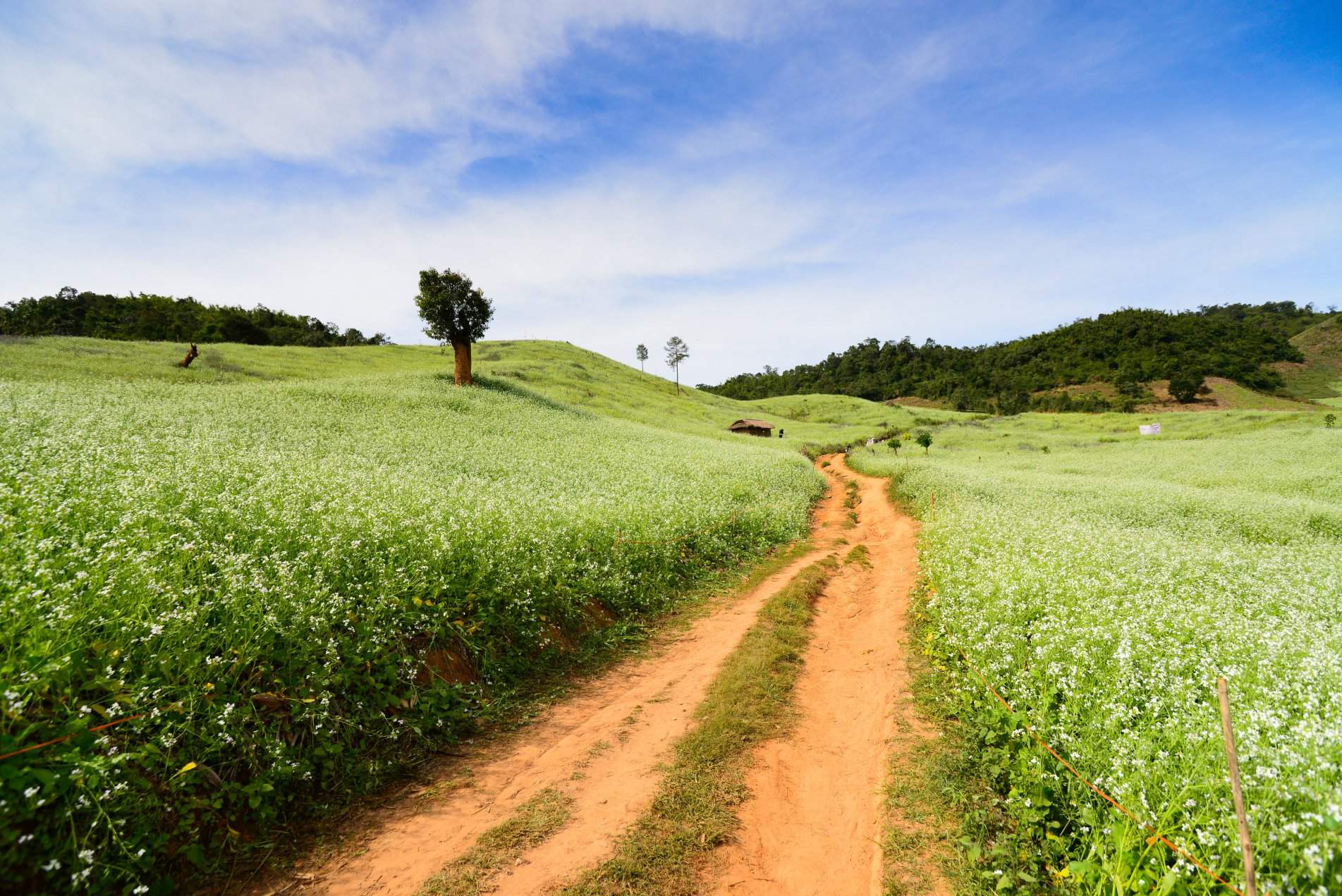When the honeyed sun of autumn still dabbles the plains, the Moc Chau Plateau has already turned cold. Its fields of white and yellow mustard flowers are in full bloom to mark the arrival of winter. Snuggled in a wool cardigan and a warm scarf, I looked for a narrow footpath in the middle of a flower field on the edge of the pine forest beside Áng Village.