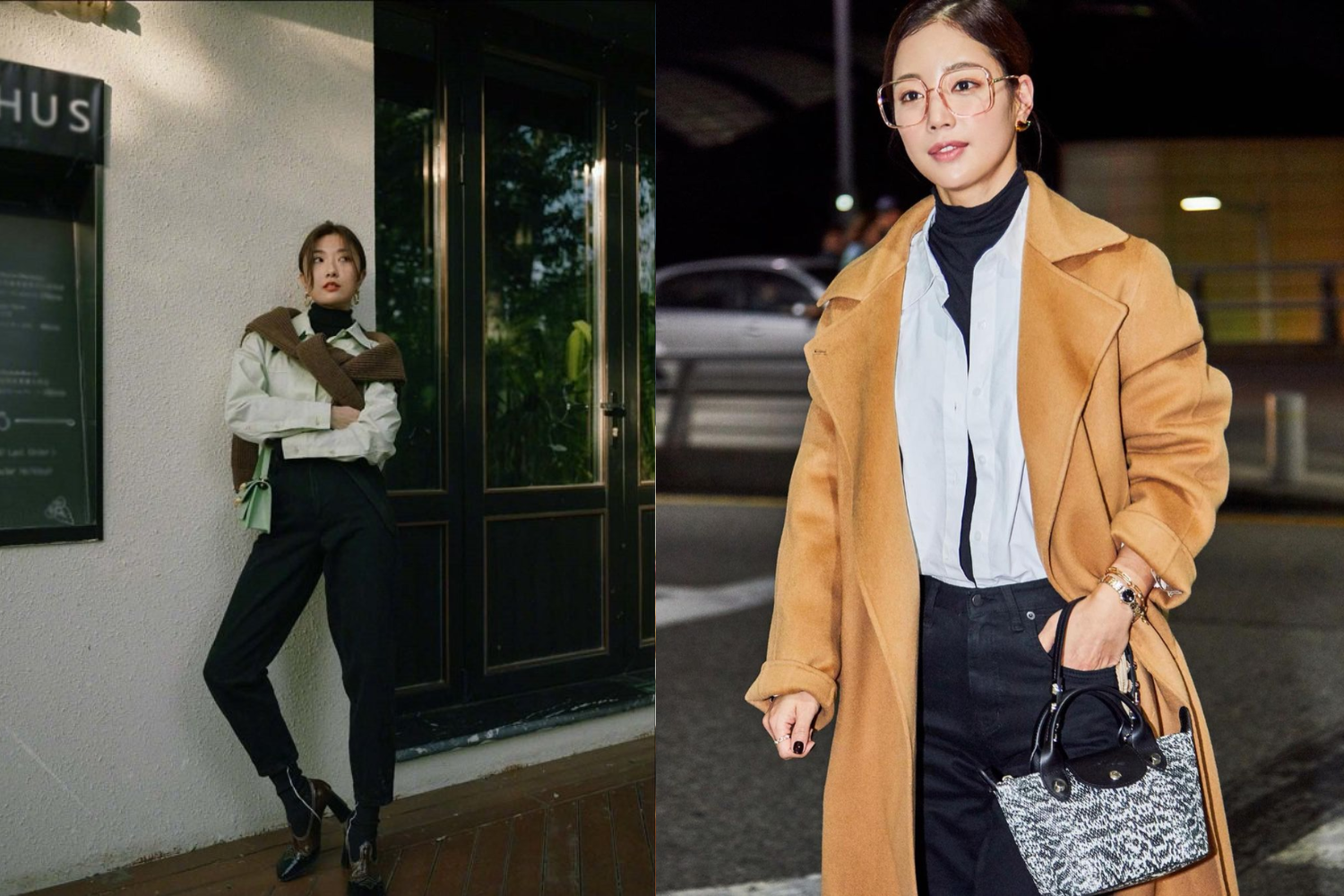 Ngược lại, chiến lược “lộ diện” biến áo giữ nhiệt thành một phần của outfit. Những chiếc áo cổ lọ màu trung tính được layer dưới áo khoác, váy hai dây hoặc sơ mi mở cúc tạo nên hình ảnh vừa cổ điển vừa hiện đại. Đây là phong cách layering quen thuộc của thời trang châu Âu, nơi công năng và thẩm mỹ song hành.