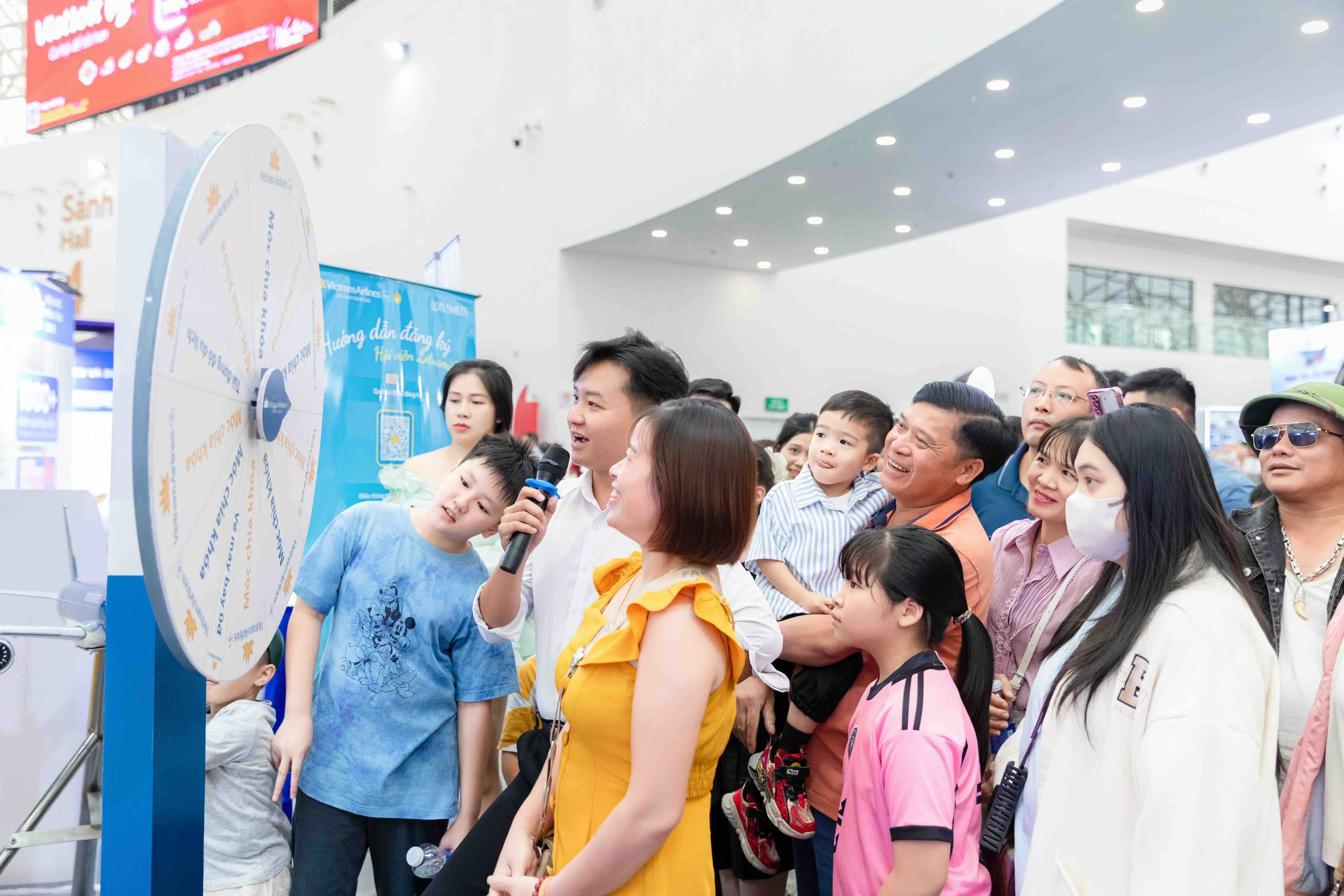 Tại khu vực tương tác, chương trình vòng quay may mắn thu hút đông đảo khách tham quan. Nhiều khách hàng nhận được các phần quà như vé máy bay nội địa, túi du lịch, móc chìa khóa và quà lưu niệm của Vietnam Airlines.