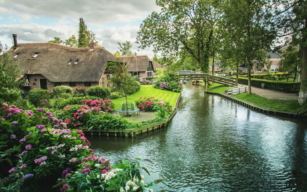 Người ta ví Giethoorn là “Venice của Hà Lan” nhưng với tôi Giethoorn bình yên và giản dị hơn nhiều. Những ngôi nhà nhỏ với mảnh vườn đầy hoa và cây xanh được chăm chút cẩn thận, bao quanh là những con kênh rạch nhỏ và để vào nhà thì cần phải đi qua những cây cầu gỗ. Rất nhiều người nhầm tưởng rằng Giethoorn là một ngôi làng du lịch. Nhưng không phải vậy, đây là một ngôi làng cổ được xây dựng từ thế kỉ 13 mà cụ thể là vào năm 1230 bởi một nhóm người tị nạn từ miền nam Hà Lan. Ngôi làng bắt đầu nổi tiếng từ năm 1958 nhờ vị giám đốc điện ảnh người Hà Lan Bert Haanstra đã đưa hình ảnh ngôi làng vào bộ phim hài “Fanfare” của mình. Dù nổi tiếng đến tận ngày nay nhưng ngôi làng cũng chỉ có vài dịch vụ như nhà hàng, tiệm bán đồ lưu niệm vì những cư dân ở đây không muốn mất đi sự bình yên vốn có của Giethoorn nên họ chủ động không mở rộng các dịch vụ để thu hút thêm du khách.