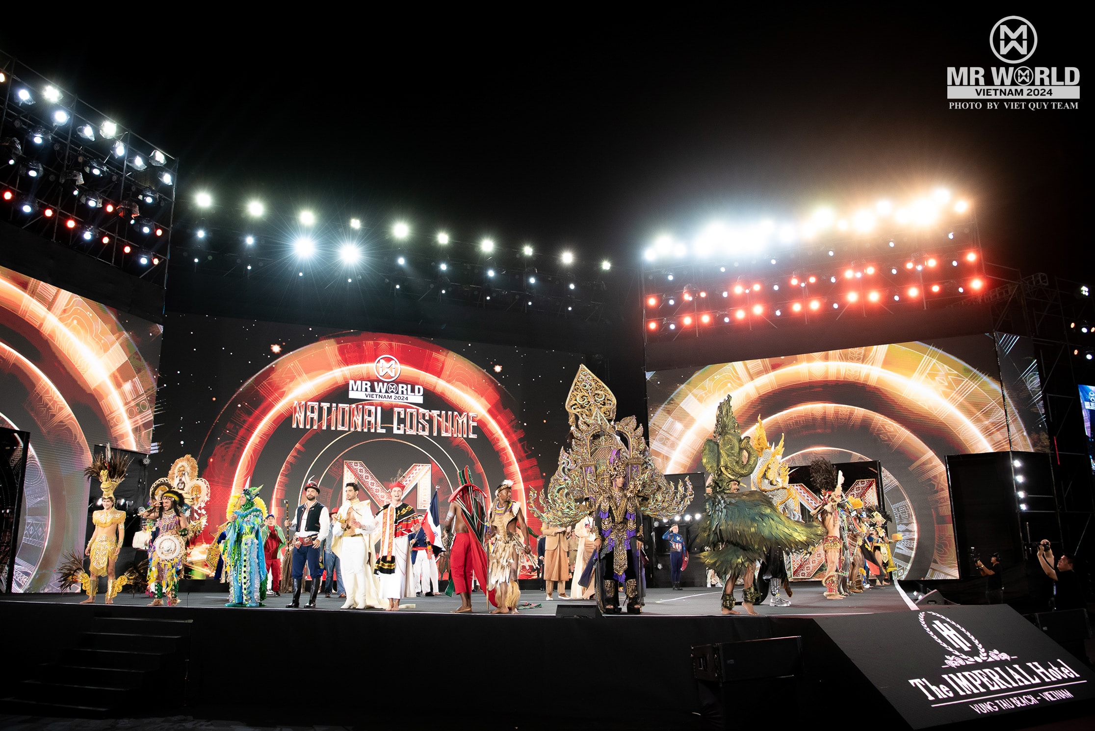 Đêm thi National Costume, diễn ra tại NovaWorld Phan Thiết, đã mang đến một không gian nghệ thuật rực rỡ sắc màu, nơi hơn 60 thiết kế trang phục truyền thống của các quốc gia tỏa sáng trên sân khấu. Đây là một trong những phần thi được mong chờ nhất tại Mr World, không chỉ tôn vinh bản sắc văn hóa mà còn là cơ hội để các thí sinh thể hiện niềm tự hào dân tộc qua những câu chuyện được truyền tải bằng trang phục.