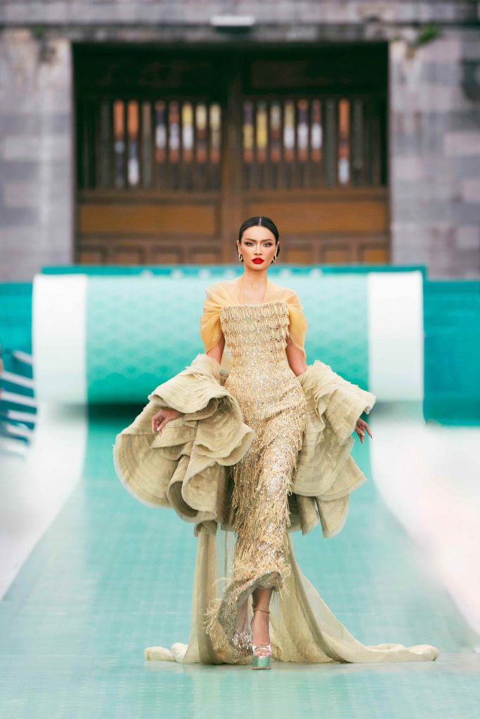 Ở đó, từng thước vải di chuyển giữa những lớp kiến trúc trăm năm, còn gió, ánh sáng và mặt nước trở thành những “yếu tố sân khấu” sống động, làm nổi bật vẻ đẹp của từng bộ sưu tập.
