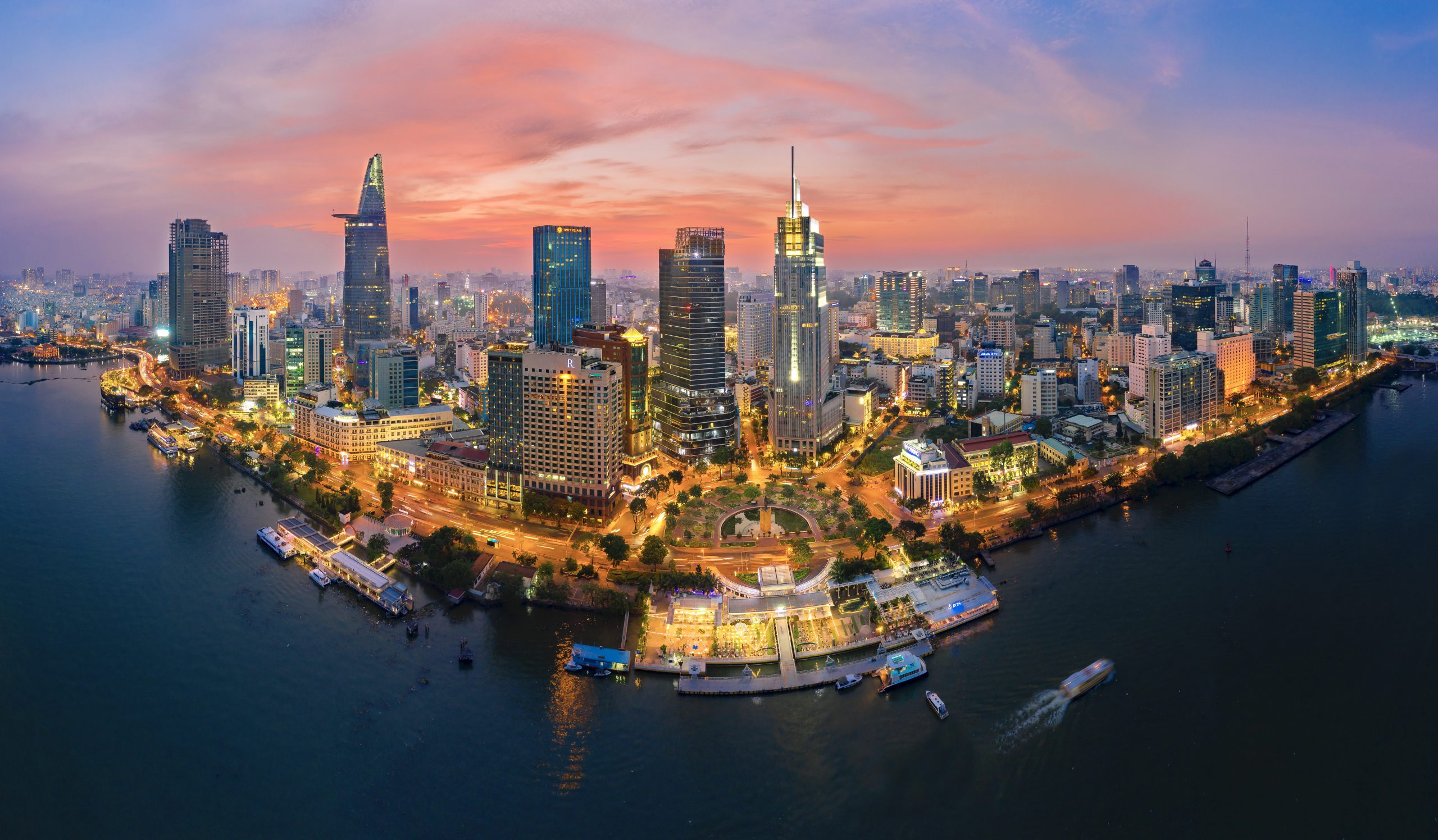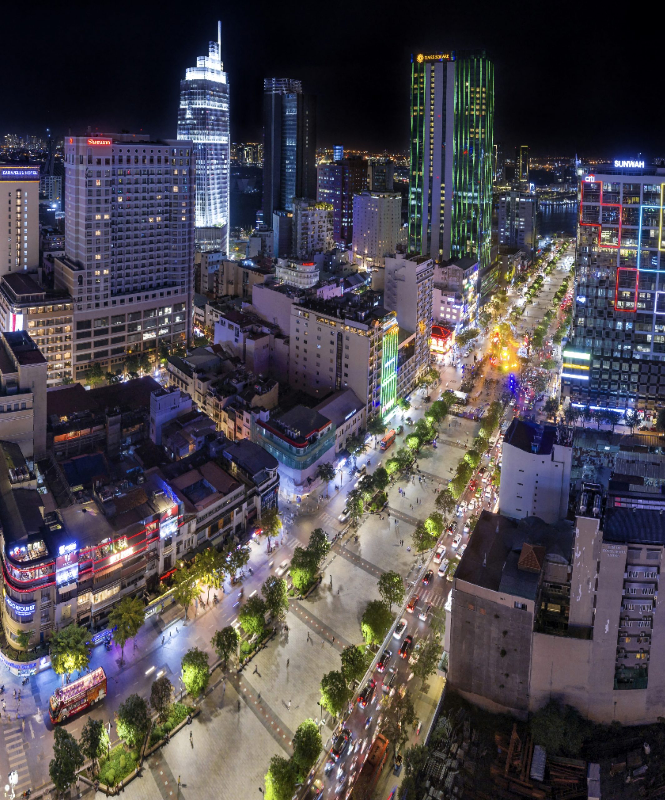 Phố đi bộ Nguyễn Huệ hướng thẳng ra sông Sài Gòn