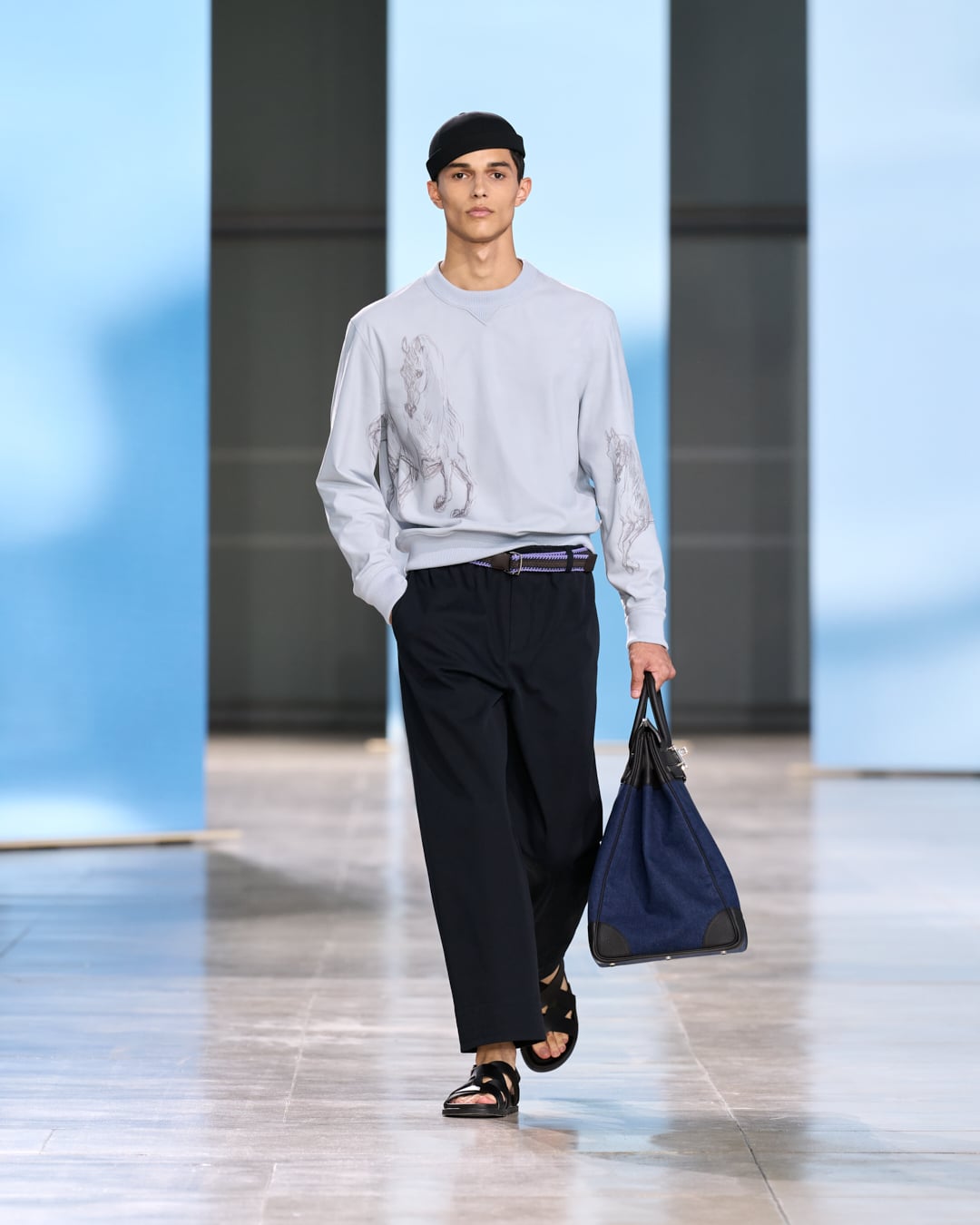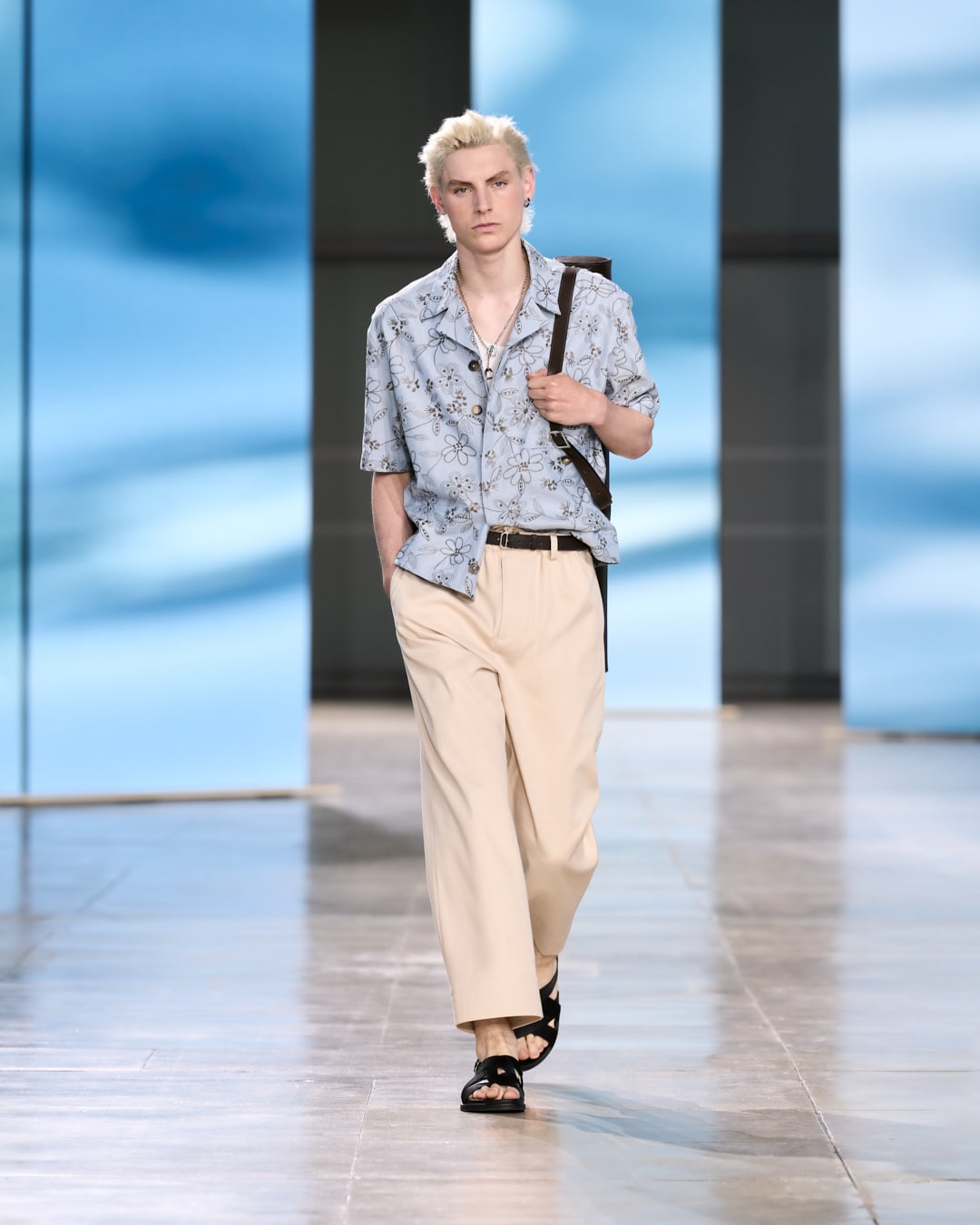 Véronique Nichanian đã đưa người yêu thời trang đến bên bờ biển cùng Hermès cho mùa Xuân/Hè 2025. Đó cũng là nơi mà những quý ông mùa Hạ của Hermès thoải mái dạo chơi trong đôi xăng đan da và quần ống rộng, bắp tay trần lộ ra vẻ khỏe mạnh, quyến rũ dưới ánh nắng chói chang.