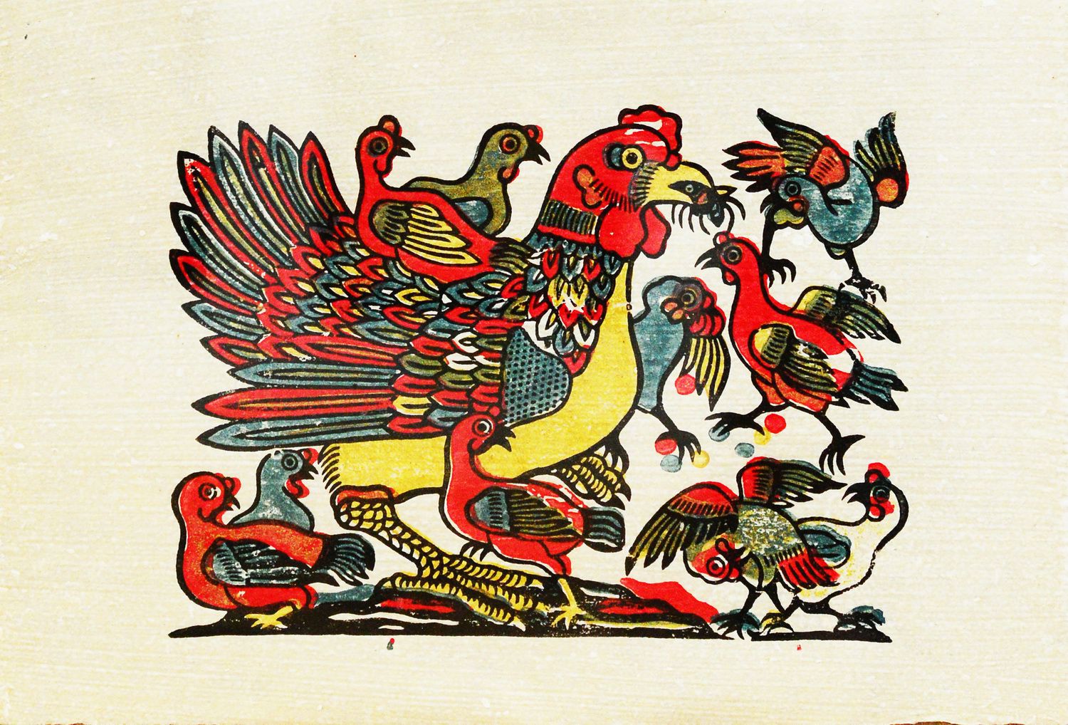 “Gà Thư Hùng” - Tranh dân gian Đông Hồ