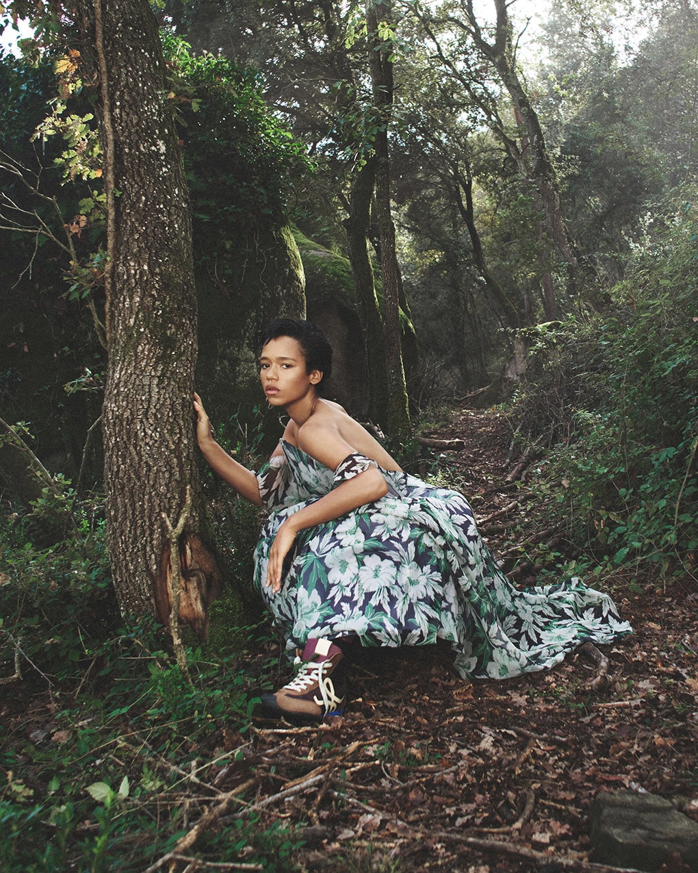Trong khung cảnh nên thơ của vùng nông thôn Tavertet, Collsacabra xứ Catalonia tại Tây Ban Nha, những thiết kế của LOEWE tôn lên khát vọng hòa mình vào thiên nhiên. Những họa tiết hoa và lông vũ tinh tế, những chiếc váy đính sequin hiện rõ như vỏ cây và tán lá hay áo khoác da mang màu nâu của đất chính là biểu hiện cho tinh thần này.