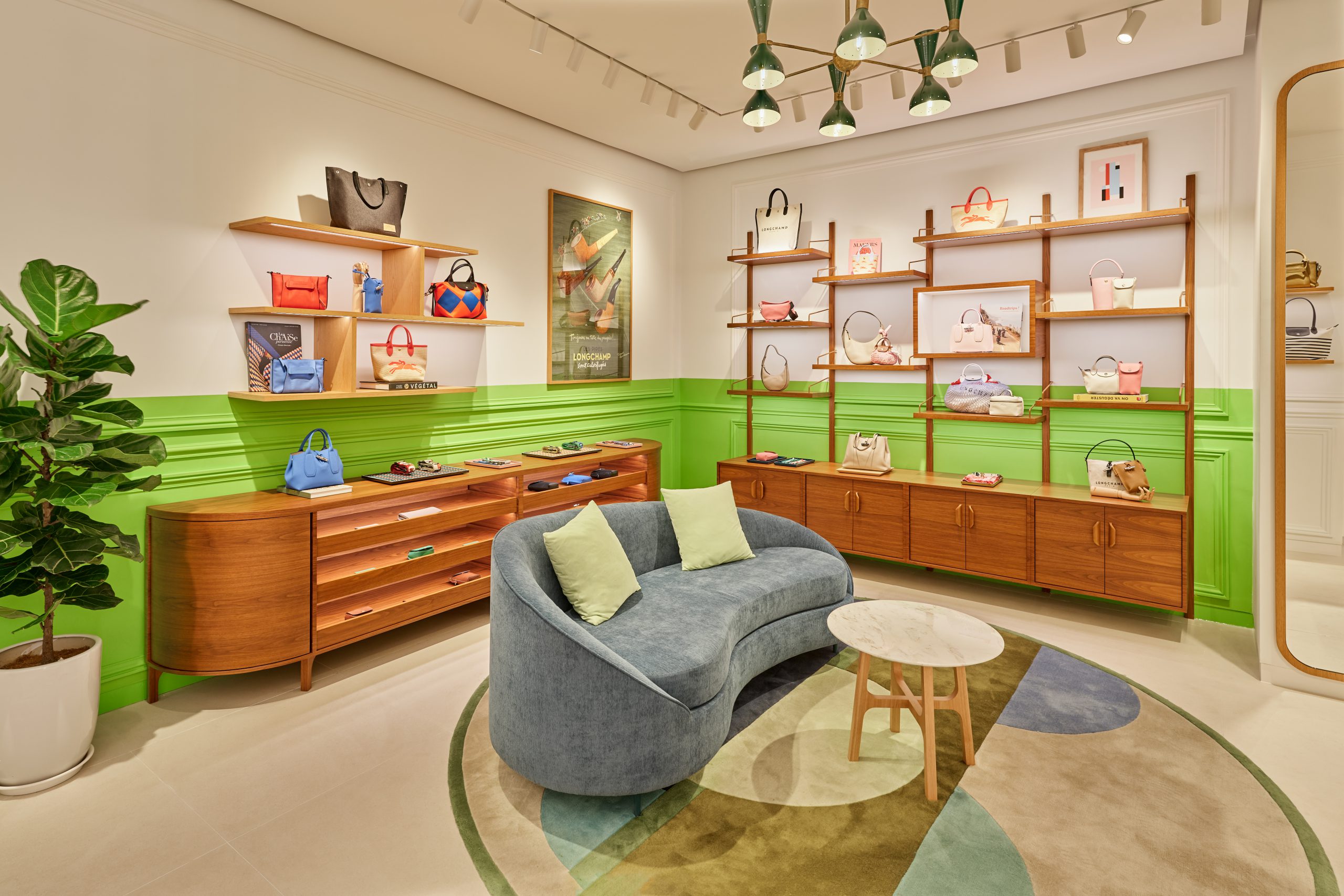 Mọi chi tiết bài trí đều phản ánh quy tắc và giá trị truyền thống của Longchamp: những mảng màu xanh lá gợi lên tính truyền thống và nguyên bản của thương hiệu, đồng thời truyền tải năng lượng và tinh thần hiện đại.