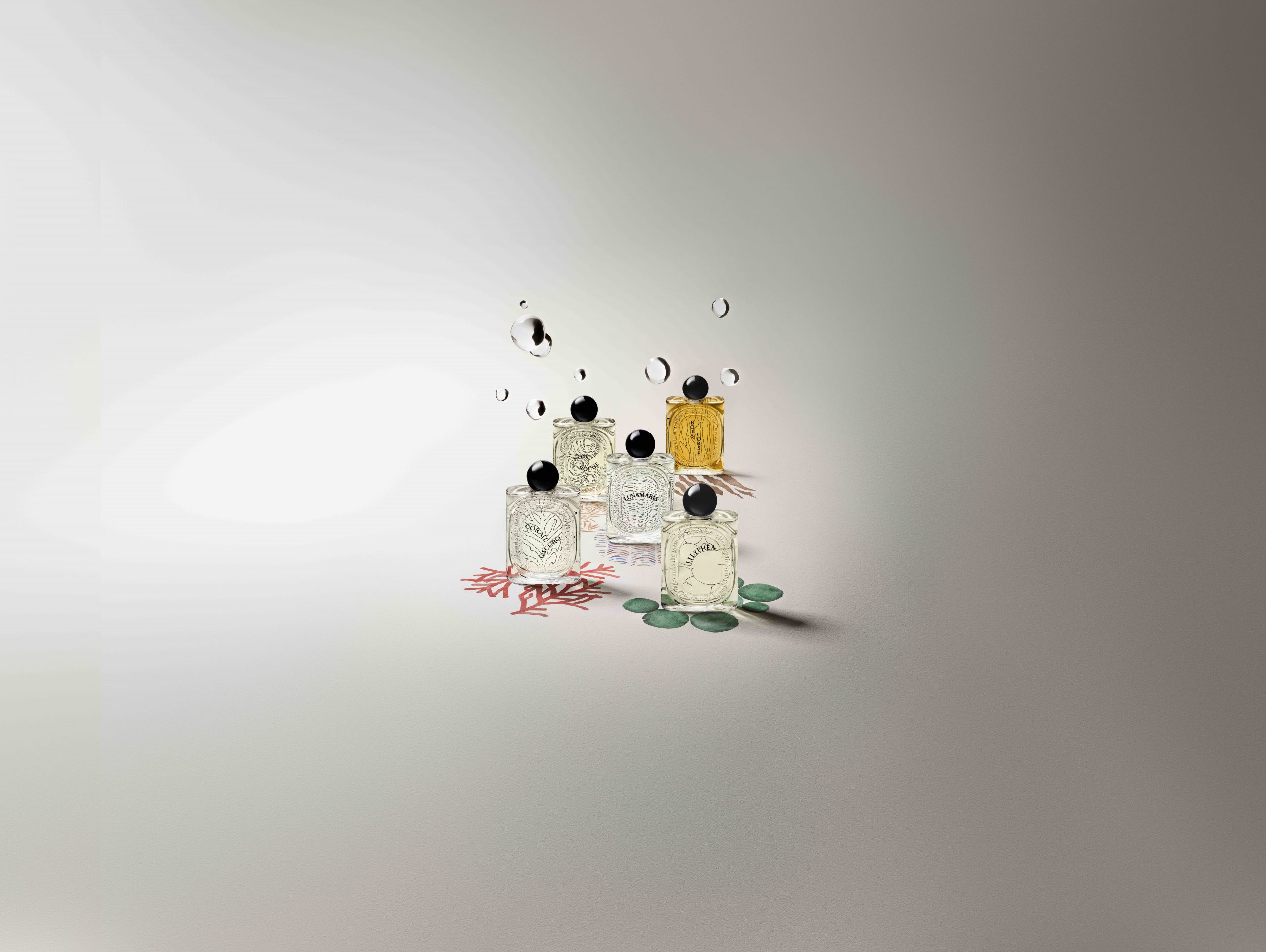Les Essences de Diptyque bao gồm năm chai nước hoa 100ml: Corail Oscuro, Lunamaris, Bois Corsé, Lilyphéa và Rose Roche. Phiên bản thử 10ml cũng có sẵn để khách hàng trải nghiệm trước khi quyết định mua dung tích lớn.
