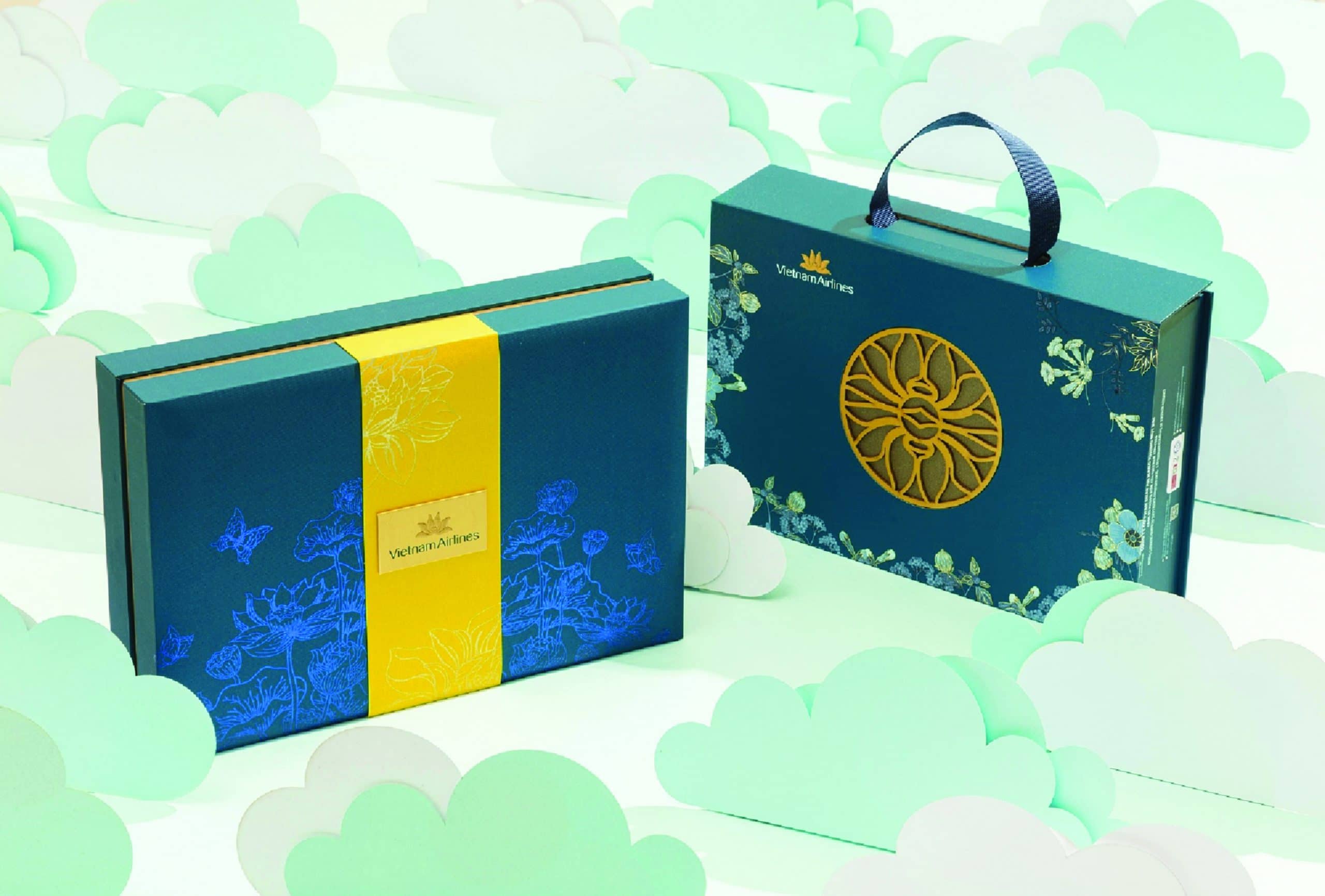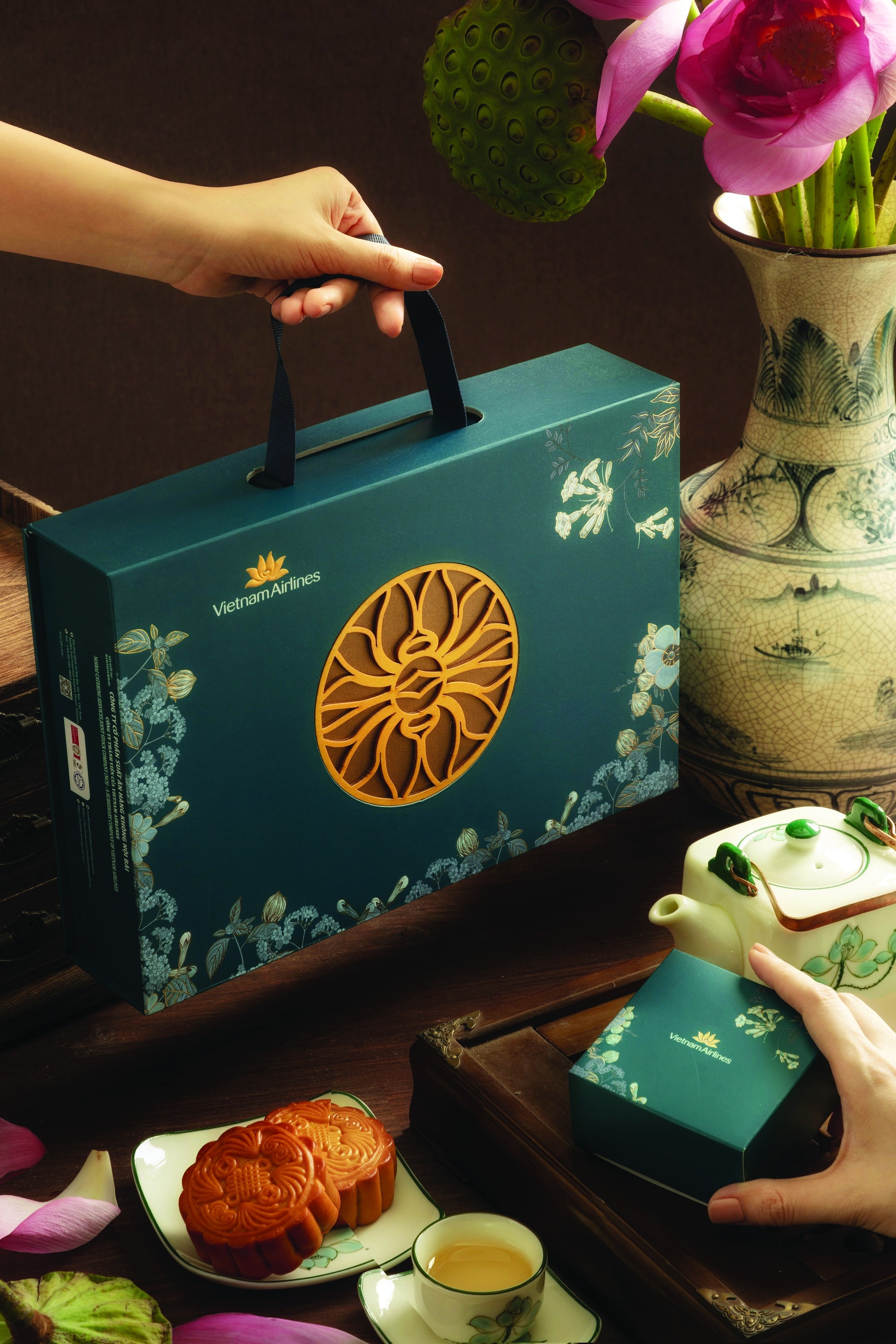 Lấy biểu tượng của Hãng Hàng không Quốc gia Việt Nam với họa tiết sen vàng “Liên Hoa Cát Tường” được thiết kế sang trọng, in dập nổi bật trên vỏ hộp, bộ sưu tập bánh Trung Thu Vietnam Airlines hứa hẹn sẽ mang đến những trải nghiệm ẩm thực thú vị và cũng lời chúc hạnh phúc, bình an, thịnh vượng gửi tới những hành khách thân yêu trong mùa trăng Rằm năm nay.