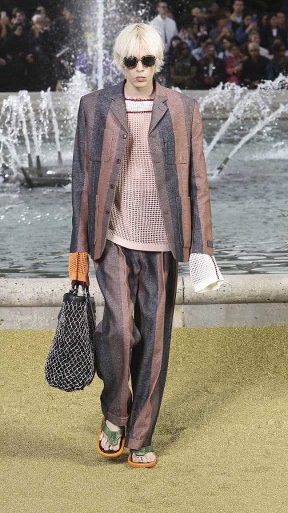 Thời trang nam giới tiếp cận các trang phục thường nhật cơ bản, kết hợp tinh tế giữa Đông và Tây. Áo khoác thể thao pha trộn đường nét phương Đông, vest may đo thoải mái với bốn nút, lấy cảm hứng từ trang phục của ngư dân, và quần satin rộng thùng thình vay mượn các chi tiết từ tobi-shoku (quần áo bảo hộ của thợ giàn giáo Nhật Bản).