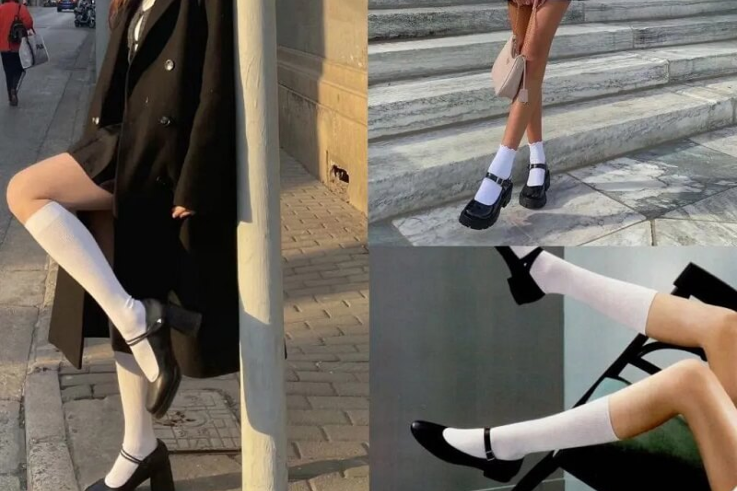 Khi tất đã là điểm nhấn, đôi giày đóng vai trò xác định thần thái. Mary Janes và loafers là lựa chọn cổ điển, hợp với tất màu lẫn họa tiết, tạo cảm giác nữ tính và trẻ trung. Với tất ren, giày slingback giúp khoe trọn hoa văn đầy tinh tế, nhấn mạnh sự mềm mại của đôi chân. Ngược lại, boots cao cổ hay sneaker bản to dễ làm “nuốt” đi vẻ đẹp của tất và phá vỡ sự cân bằng của bộ đồ, trừ khi bạn theo đuổi phong cách thể thao – cá tính một cách rõ ràng.