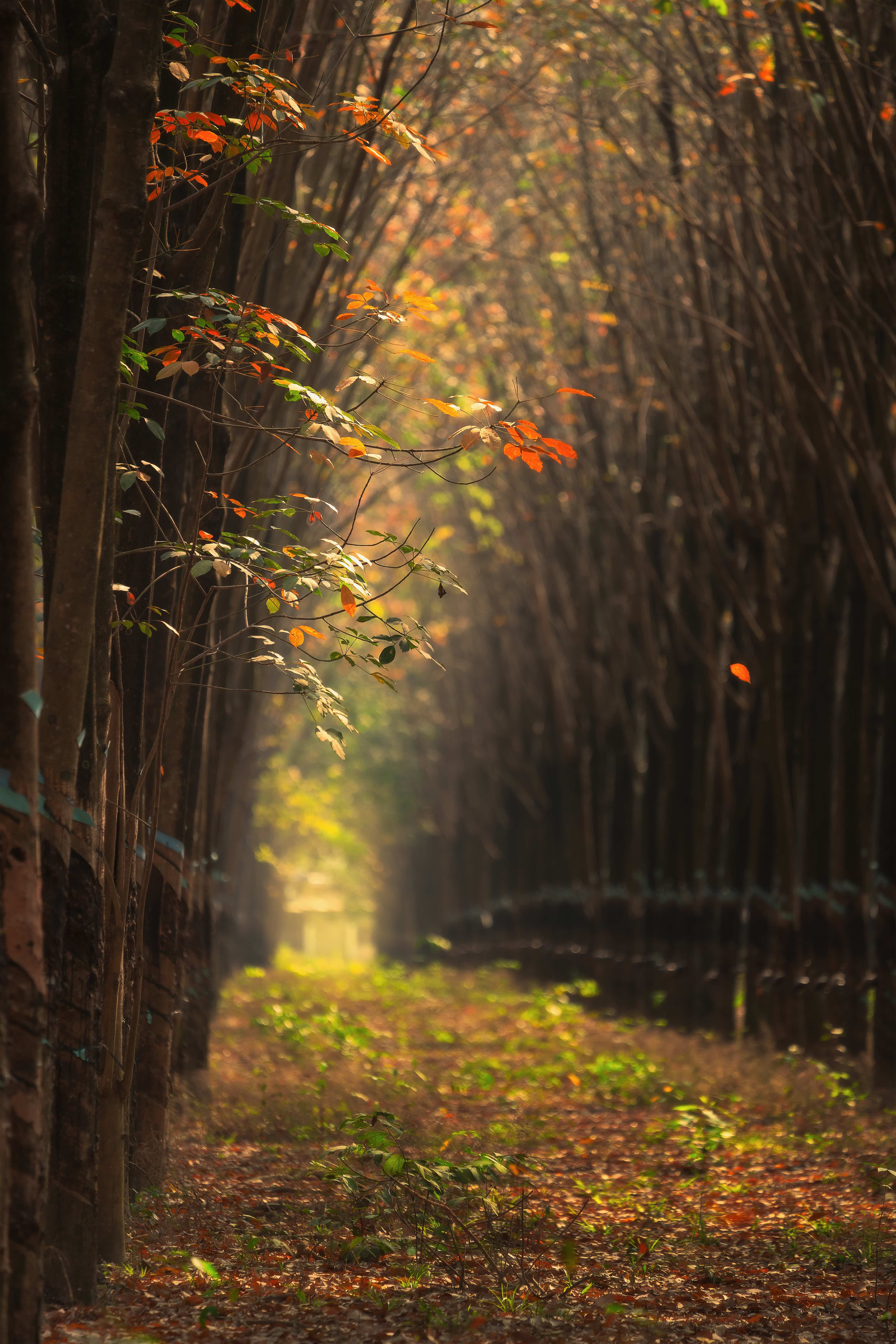 Từ cuối tháng Mười Hai đến tháng Ba hàng năm, những cánh rừng cao su ở Tp. Hồ Chí Minh, Lâm Đồng, Đồng Nai và Tây Ninh lần lượt thay áo mới. Lá chuyển từ xanh đậm sang vàng rực, rồi ửng đỏ, trước khi lìa cành và khẽ rơi trong làn gió nhẹ. Dưới ánh nắng buổi sớm, lớp lá rụng phủ dày trên lối đi như tấm thảm mùa thu trải dài bất tận. Cả khu rừng bỗng trở thành một bản giao hưởng của sắc màu và ánh sáng hòa mình giữa làn sương sớm trông thật huyền ảo.