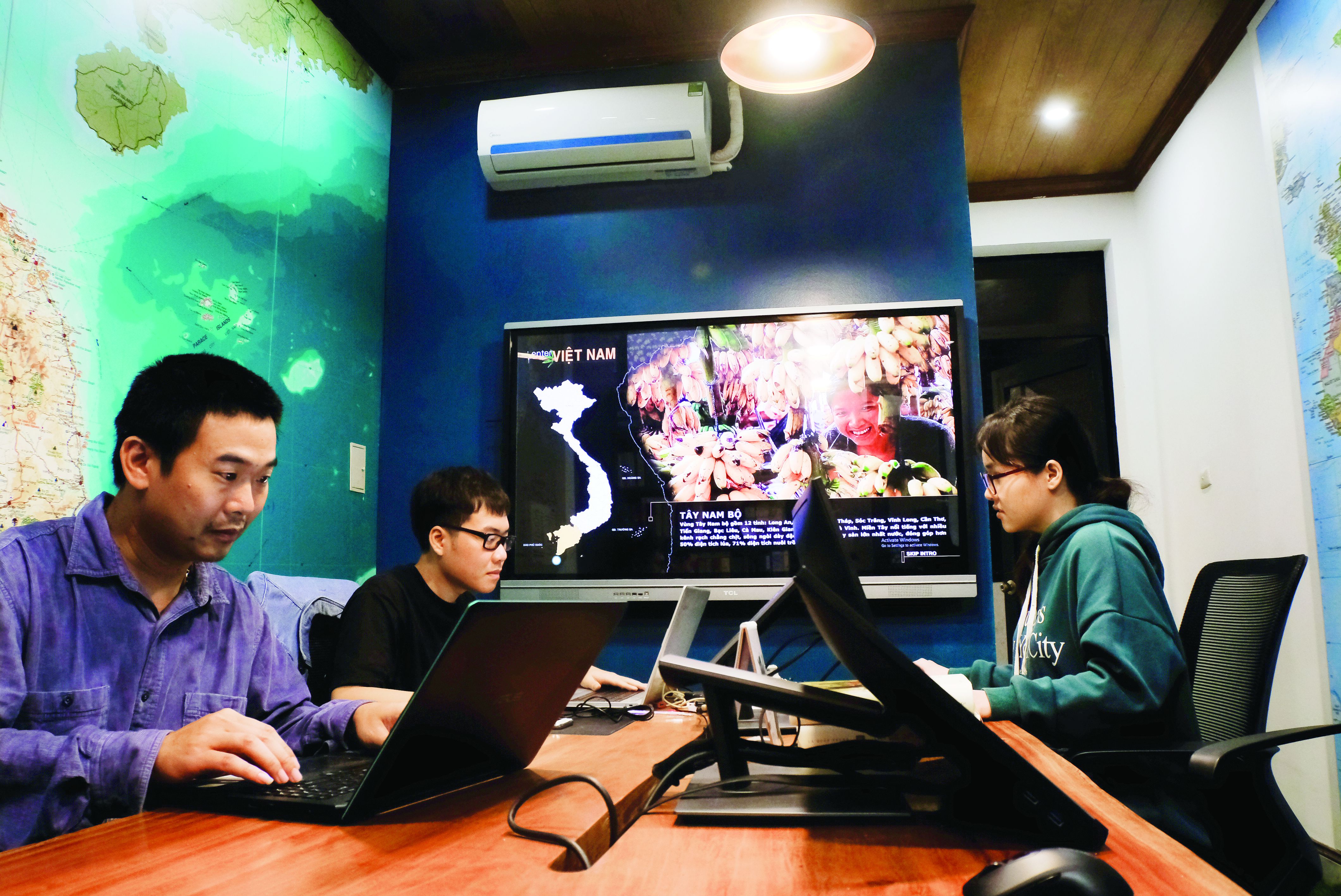 Ngoài tác giả chính của chương trình thì nhiếp ảnh gia Nguyễn Bá Ngọc là người chủ lực ghi hình tất cả những gì hiện ra trước ống kính. Từ voi Tây Nguyên tới những ngôi chùa cổ trên cả nước, từ các họa tiết chạm đá ở đền Đinh – Lê cho tới những buổi sớm sương giăng mây phủ trên đỉnh núi cao, anh cùng cộng sự lặn lội mọi nơi chốn của đất nước để hoàn thiện Enter Vietnam. Thêm vào đó là nhóm các bạn trẻ ở hậu trường, họ có nhiệm vụ thu thập tư liệu về từng địa phương,từ địa giới hành chính, thông tin dân số, diện tích cho tới màu sắc hoa văn thổ cẩm, những điệu hát đặc trưng… Bởi vậy khi nhập vào một địa phương nào đó, người dùng sẽ thấy mình đang tiến vào một ma trận đầy thú vị, có thể biết rất nhiều điều mà thậm chí Google cũng không đưa ra. Ví dụ truy cập vào Bắc Ninh, người xem sẽ biết diện tích của tỉnh, có bao nhiêu huyện, có bao nhiêu dòng sông, danh lam thắng cảnh ở đây có những gì. Đi sâu vào danh thắng, ta sẽ biết ở đây có pho tượng nào đặc biệt, có ngôi chùa nào nhất thiết phải tham quan. Tất cả đều là dữ liệu do Enter Vietnam chụp lại, sau đó đưa vào phần mềm xử lý 3D để người dùng có cảm nhận trực tiếp nhất về từng hiện vật.