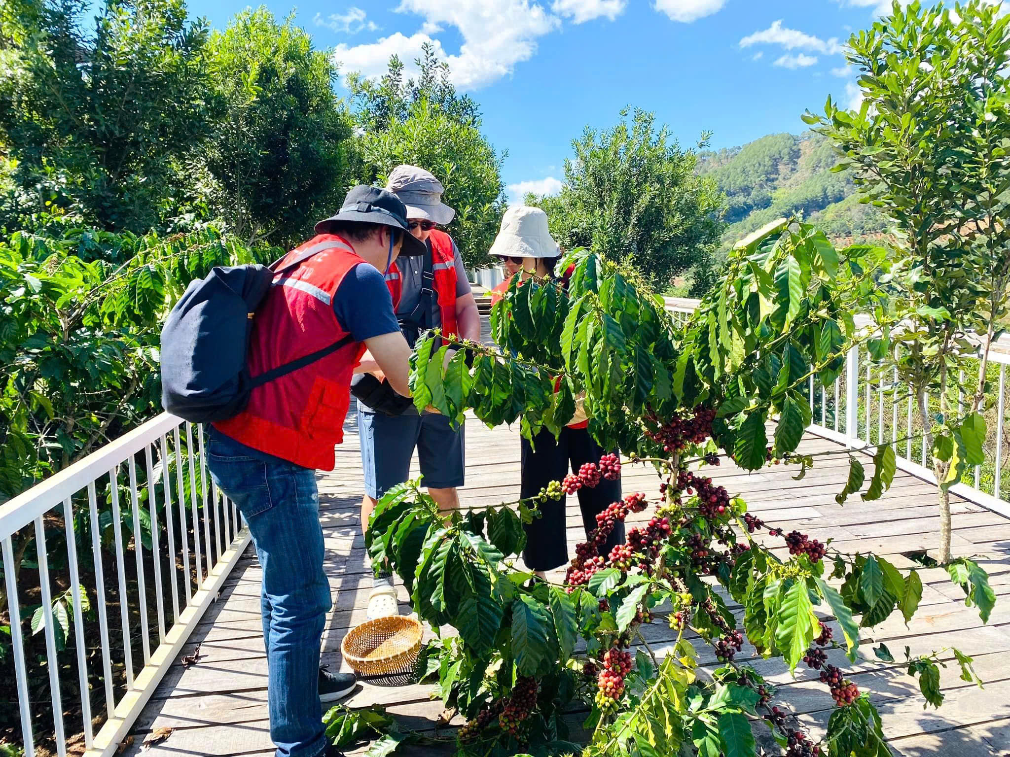 Du khách nước ngoài trải nghiệm thu hoạch cà phê hạt Arabica Lâm Đồng